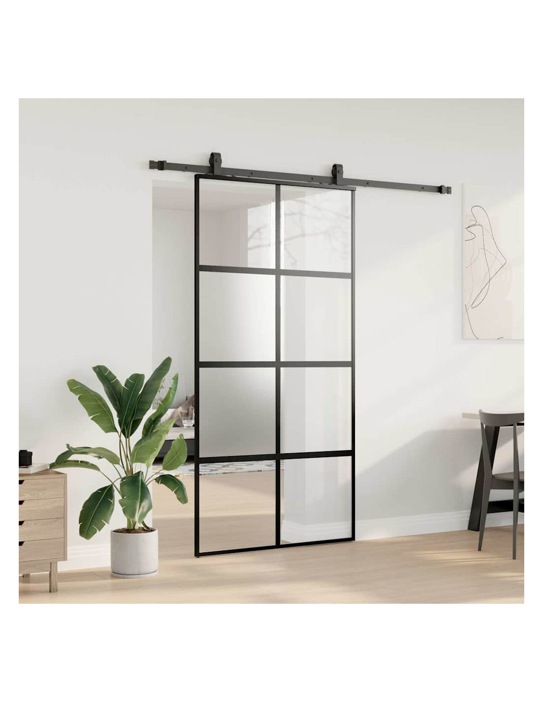 Porta Scorrevole Ferramenta Nera 102,5x205 cm Vetro Temperato