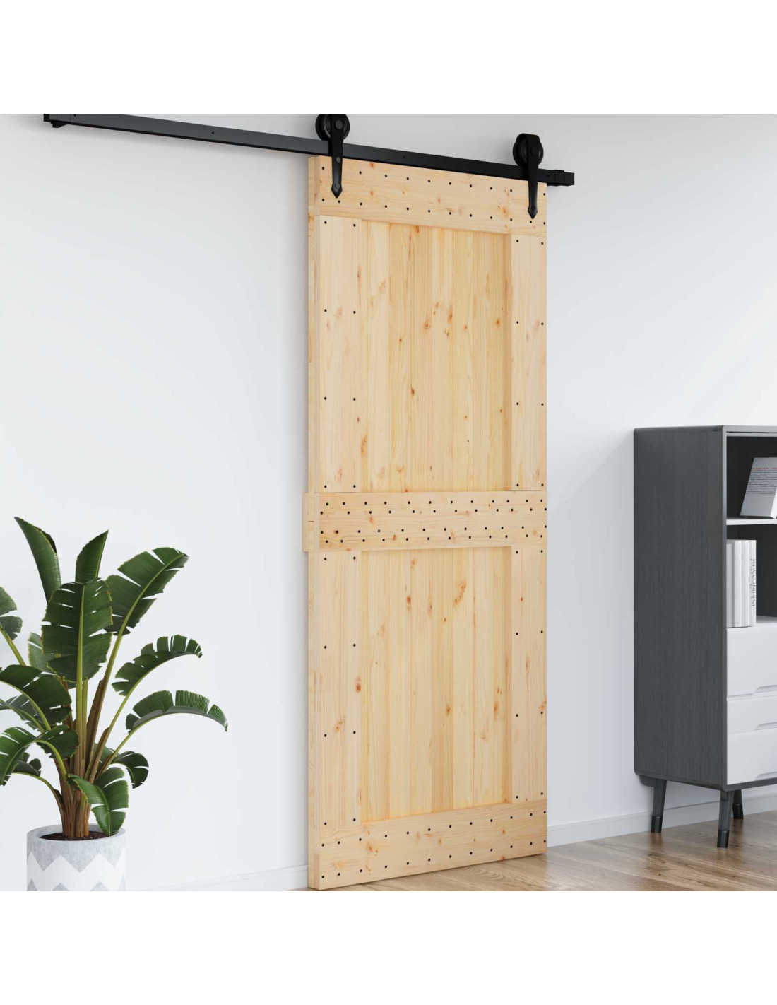 - Materiale in Pino Massiccio: Questa porta, realizzata in legno di pino massiccio, mostra la naturalezza del legno non trattato, regalando un look autentico.