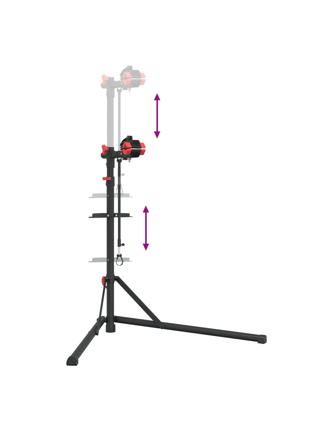 - Altezza regolabile: l'altezza del supporto per la riparazione della bicicletta può essere facilmente regolata grazie alla maniglia a sgancio rapido, consentendo di posizionare la bicicletta a un'altezza di lavoro comoda.