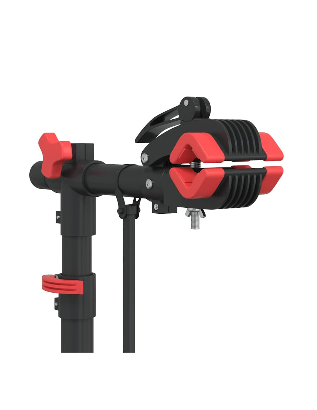 - Barra di fissaggio per la stabilità: la barra di fissaggio telescopica stabilizza le ruote anteriori o il manubrio della bici, evitando oscillazioni o scossoni durante le riparazioni.