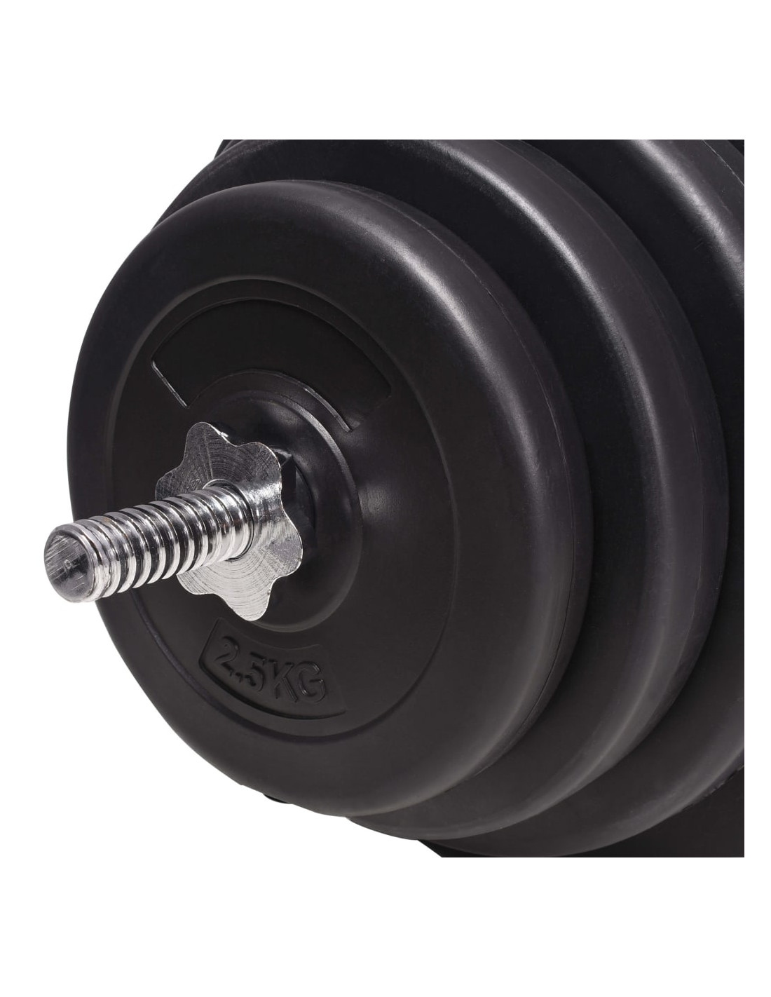 Questo set consente agli utenti di impostare pesi diversi in funzione dei vari esercizi. Le piastre di peso sono realizzate in cemento con un involucro di plastica e possono essere facilmente fissate sul bilanciere grazie ai fermi a stella inclusi. Il peso è chiaramente indicato su ciascuna piastra per un'identificazione rapida e semplice.