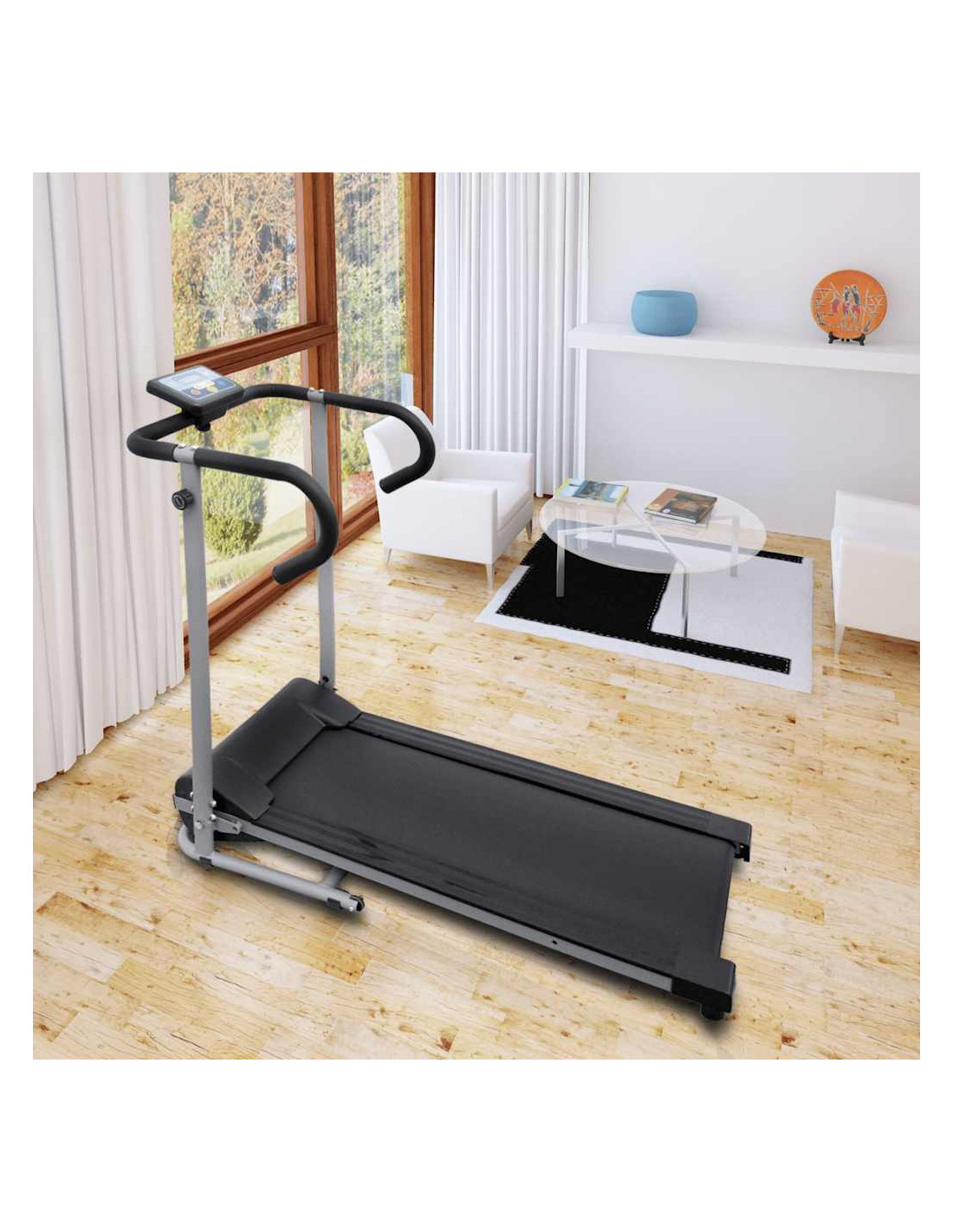 Il tapis roulant pieghevole è dotato di uno schermo LCD da 3" (8 cm) su cui è possibile monitorare velocità, tempo e distanza. Il tapis roulant ha un'ampia superficie di appoggio di 121 x 50 cm e comode maniglie. In caso di emergenza, è possibile utilizzare il pulsante di sicurezza, in modo che il tapis roulant si fermi quasi immediatamente.