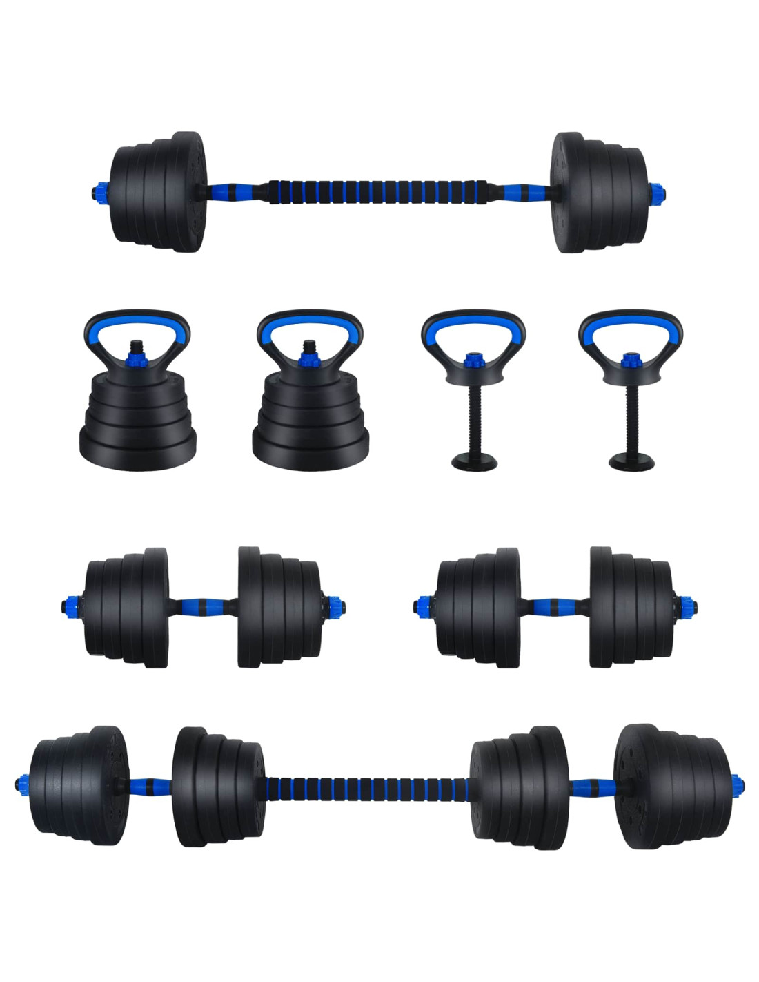 - Composizione Materiale: Fatti con una combinazione di PVC e sabbia di ferro, questi manubri sono robusti e resistenti. I materiali garantiscono durata e longevità, supportando allenamenti impegnativi.