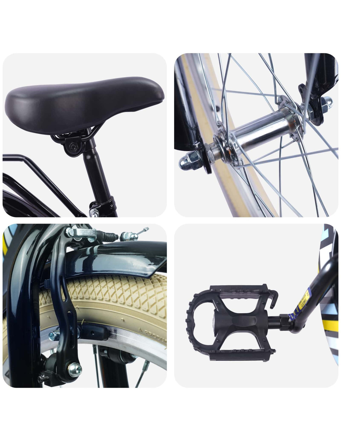 - Materiali: Fatta in acciaio e gomma, questa bici per bambini è robusta e comoda. Il telaio in acciaio è progettato per resistere all'uso quotidiano mentre esplori i sentieri. Le impugnature in gomma assicurano una presa sicura e comfort durante le corse.