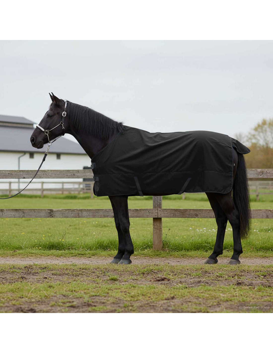 - Componenti di design pratici: Dotata di fibbia regolabile e chiusure a strappo, la coperta si adatta perfettamente. Questi accorgimenti assicurano il massimo comfort e facilitano indossare e togliere la coperta in fretta, a seconda delle esigenze climatiche o della attività del cavallo.