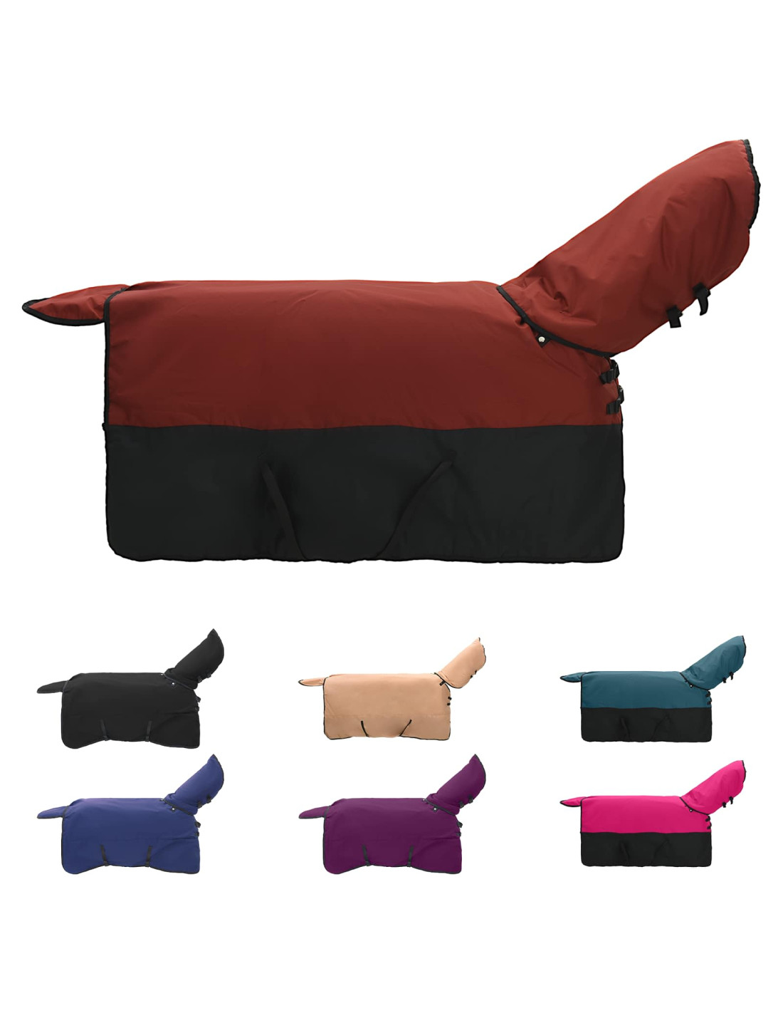 - Componenti di design pratici: Dotata di fibbia regolabile e chiusure a strappo, la coperta si adatta perfettamente. Questi accorgimenti assicurano il massimo comfort e facilitano indossare e togliere la coperta in fretta, a seconda delle esigenze climatiche o della attività del cavallo.