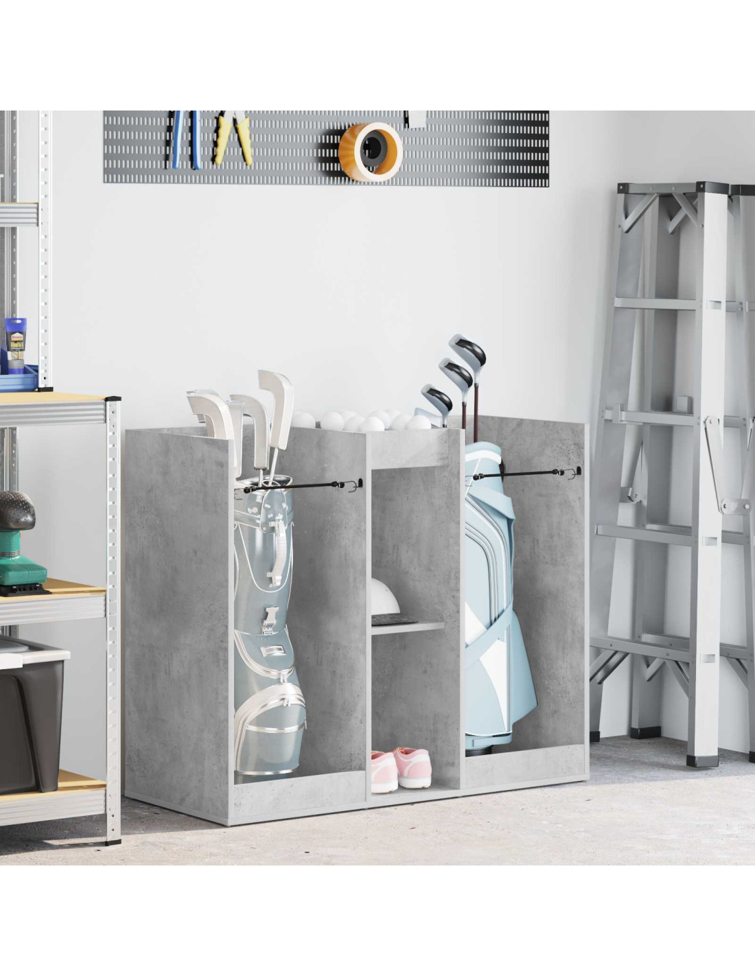 - Usi Consigliati: Ideale per garage o spazi interni che richiedono versatilità. Ottimo per tenere in ordine l’attrezzatura da golf e altro, si integra facilmente in stanze moderne. Non si limita solo allo sport, ma si adatta a diverse esigenze di stoccaggio.