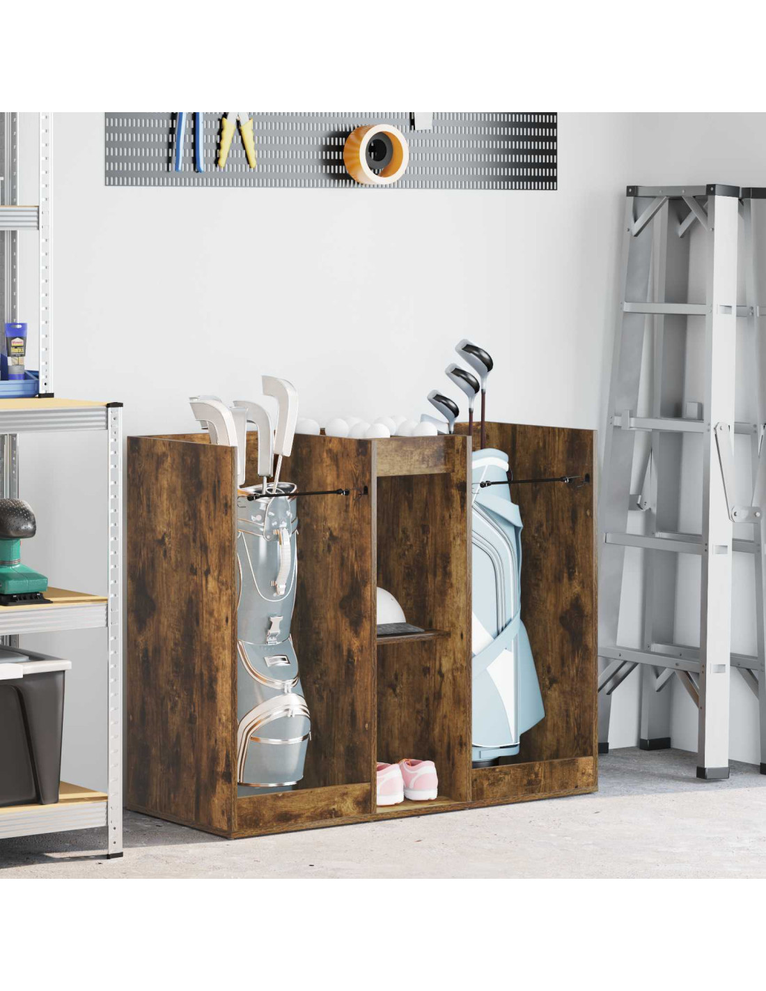 - Usi Consigliati: Ideale per garage o spazi interni che richiedono versatilità. Ottimo per tenere in ordine l’attrezzatura da golf e altro, si integra facilmente in stanze moderne. Non si limita solo allo sport, ma si adatta a diverse esigenze di stoccaggio.