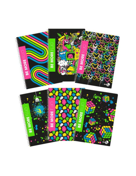 CF 5 QUADERNI MAXI SPIRALATI FLUO A4 80GR RIGATURA 1 RIGO NO FORI DOPPIA COVER 230GR PLASTICA LUCIDA