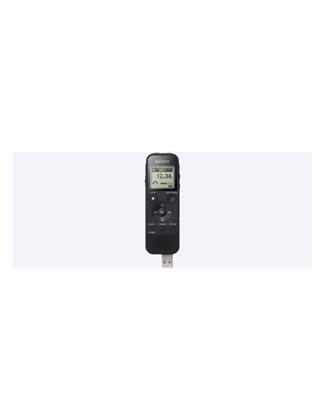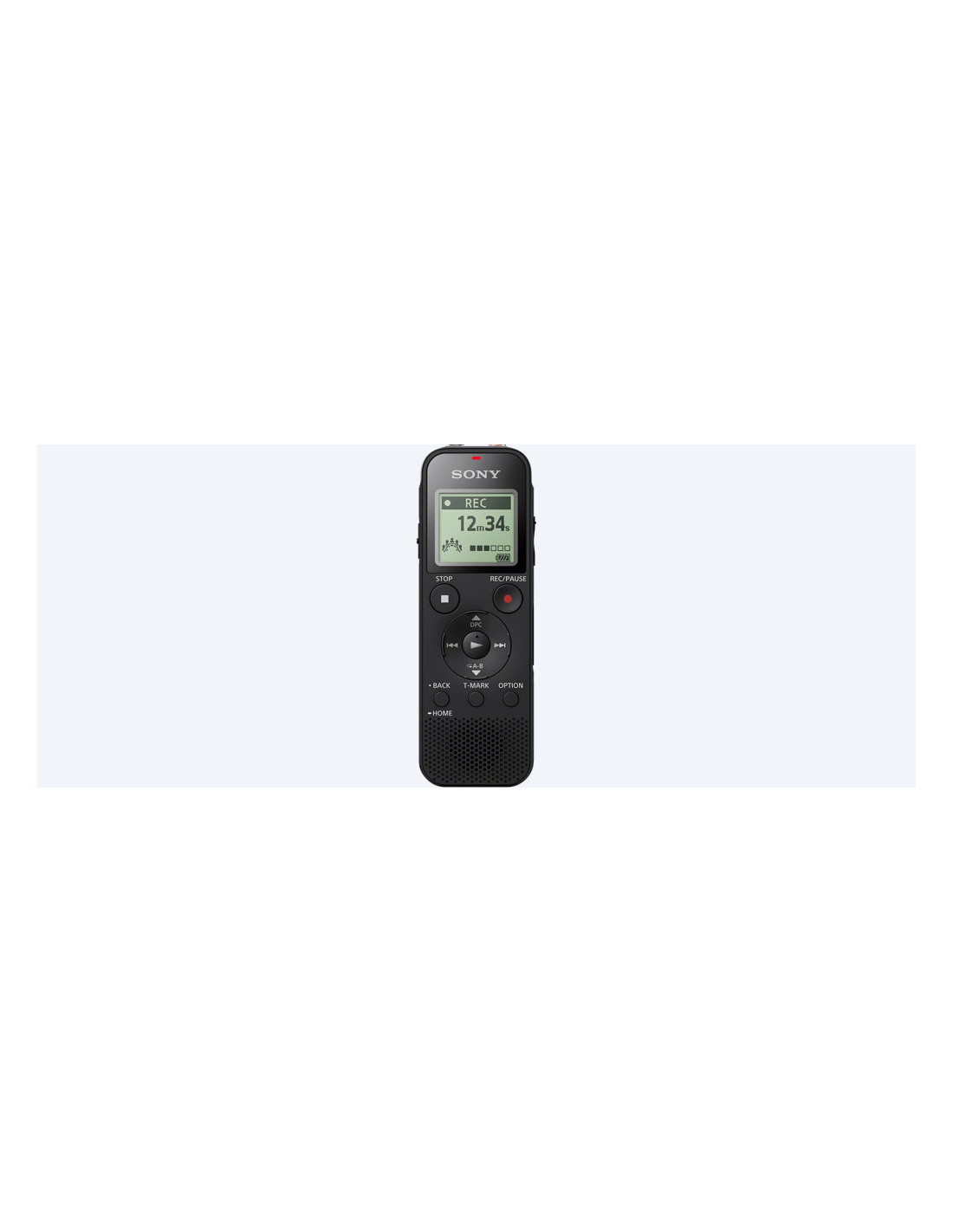 Sony ICD-PX470. Tempo di registrazione massimo: 159 h, Modalità registrazione: Modulazione a codice di impulsi lineari (LPCM), Formati audio supportati: LPCM, MP3, WMA. RAM installata: 4096 MB. Interfaccia: USB. Tecnologia batteria: Nichel-Metallo Idruro (NiMH), Dimensioni della batteria compatibile: Mini Stilo AAA, Durata batteria: 62 h. Formati supportati: Memoria interna e scheda di memoria, Tipi schede di memoria: MicroSD (TransFlash), Capacità memoria integrata: 4 GB