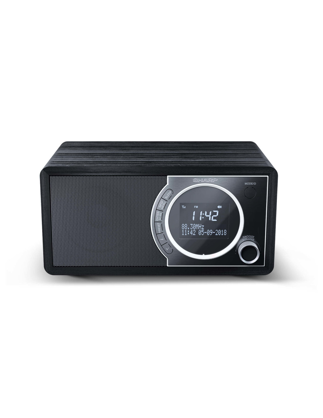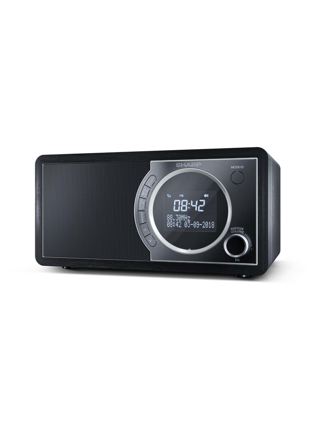 Sharp DR-450. Tipo radio: Personale, Tipo sintonizzatore: Digitale, Bande del sintonizzatore: DAB, DAB+, FM. Potenza in uscita (RMS): 3 W. Tipo di display: LCD. Colore del prodotto: Nero, Acciaio inox, Materiali: Acciaio inox, Legno, Colorazione: Monocromatico. Alimentazione: AC, Tensione di ingresso AC: 100 - 240 V, Frequenza di ingresso AC: 50 / 60 Hz