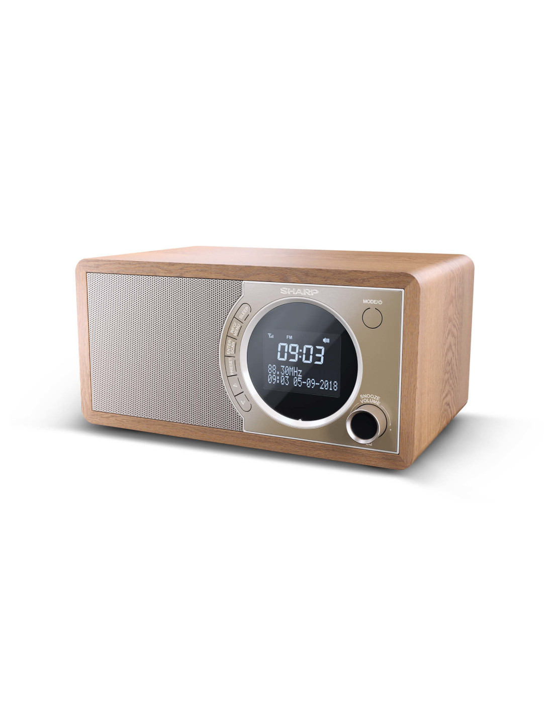Sharp DR-450. Tipo radio: Personale, Tipo sintonizzatore: Digitale, Bande del sintonizzatore: DAB, DAB+, FM. Potenza in uscita (RMS): 3 W. Tipo di display: LCD. Colore del prodotto: Marrone, Acciaio inox, Materiali: Acciaio inox, Legno, Colorazione: Monocromatico. Alimentazione: AC, Tensione di ingresso AC: 100 - 240 V, Frequenza di ingresso AC: 50 / 60 Hz