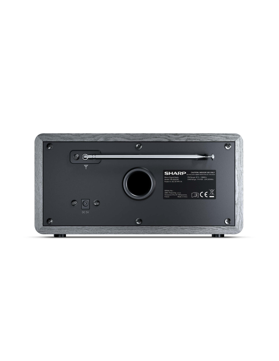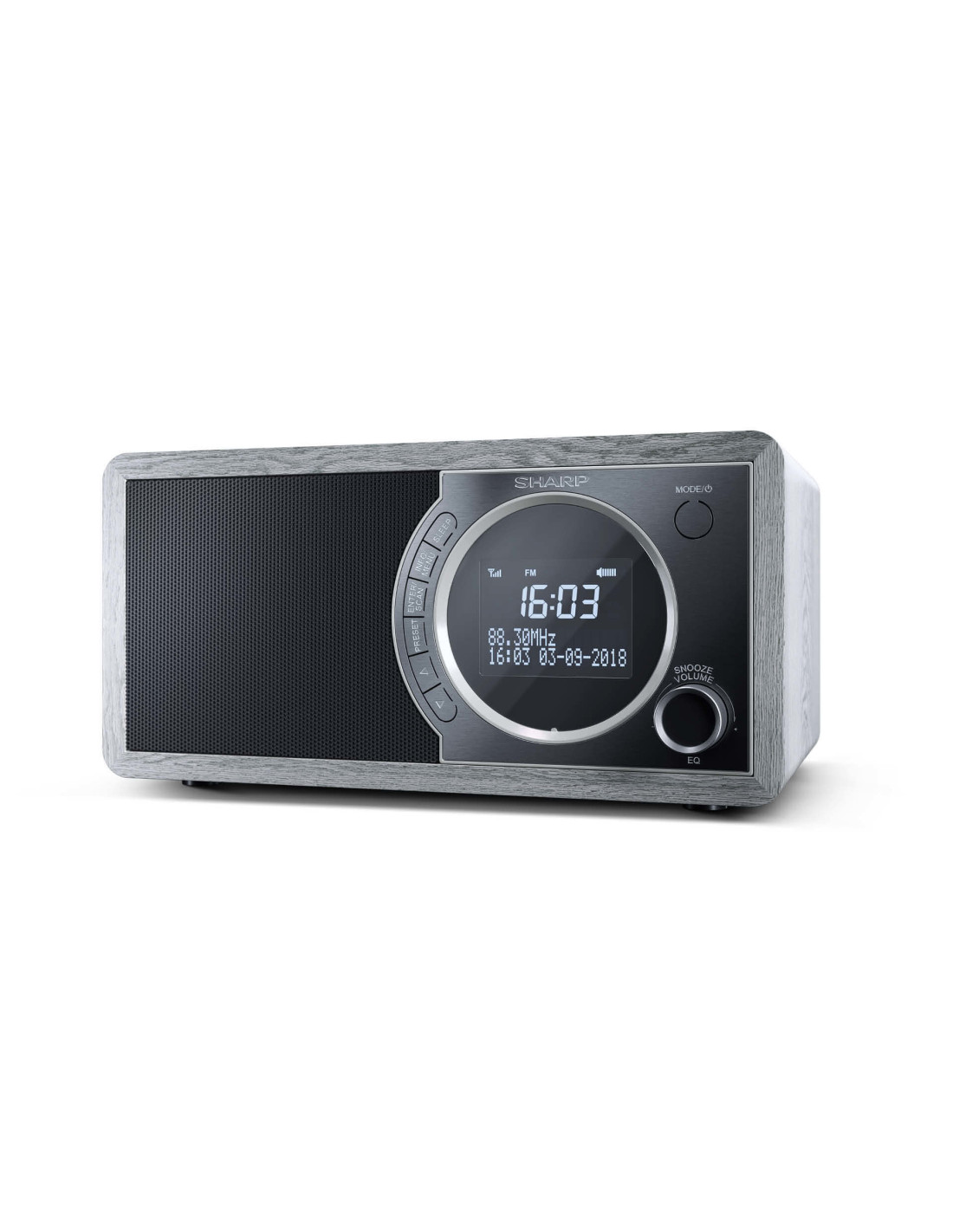 Sharp DR-450. Tipo radio: Personale, Tipo sintonizzatore: Digitale, Bande del sintonizzatore: DAB, DAB+, FM. Potenza in uscita (RMS): 3 W. Tipo di display: LCD. Colore del prodotto: Grigio, Acciaio inox, Materiali: Acciaio inox, Legno, Colorazione: Monocromatico. Alimentazione: AC, Tensione di ingresso AC: 100 - 240 V, Frequenza di ingresso AC: 50 / 60 Hz