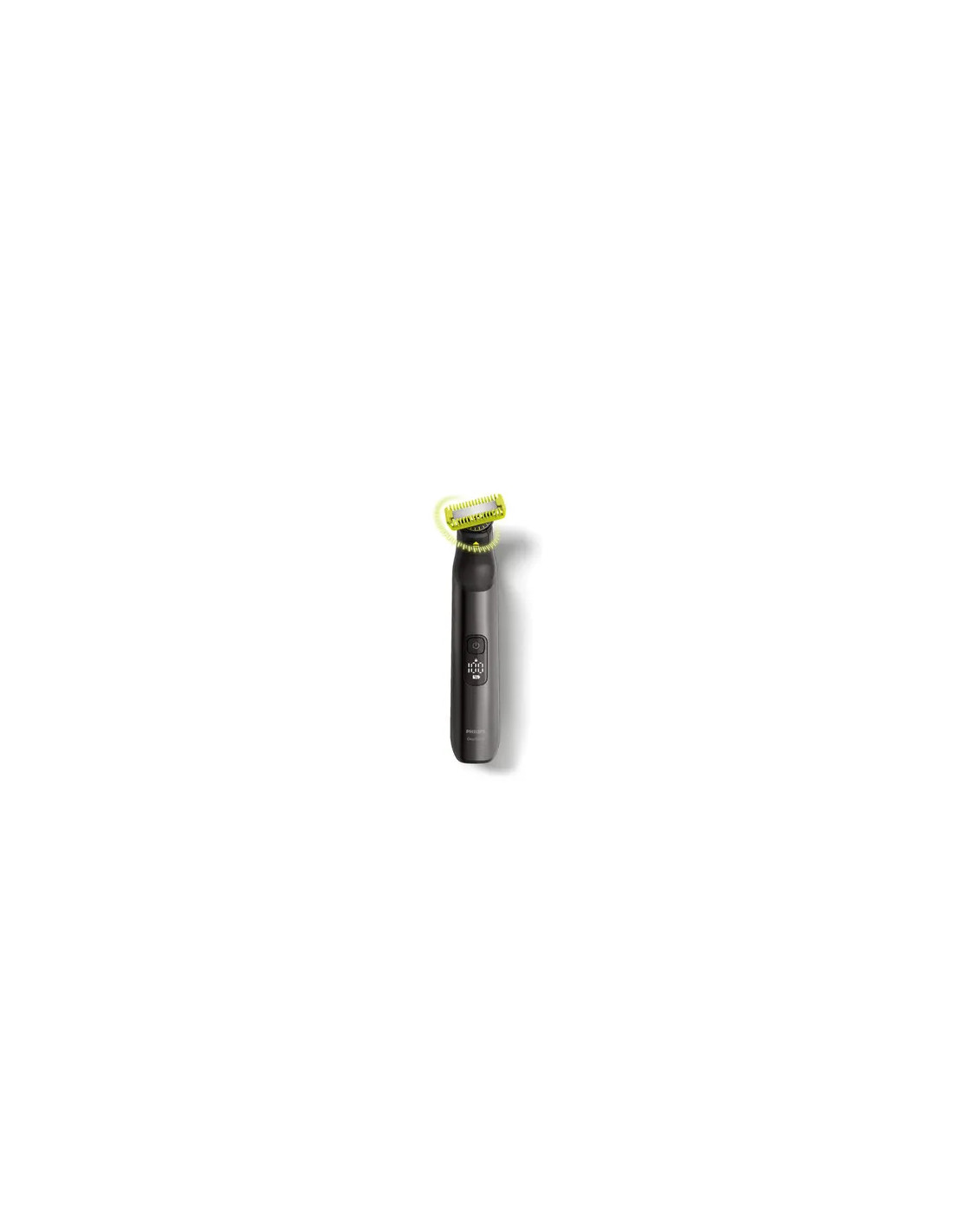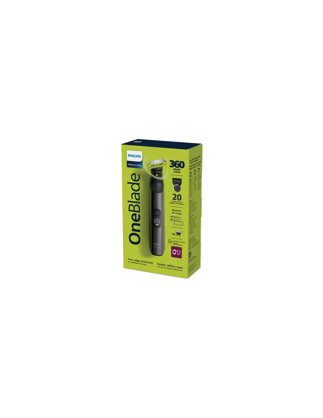 Philips OneBlade Pro Face + Body rade, regola e rifinisce la barba di qualsiasi lunghezza. Provvisto di una lama per il viso e di una lama per il corpo con sistema di protezione ad aggancio. Non dovrai più utilizzare tanti strumenti. Ti basta OneBlade.