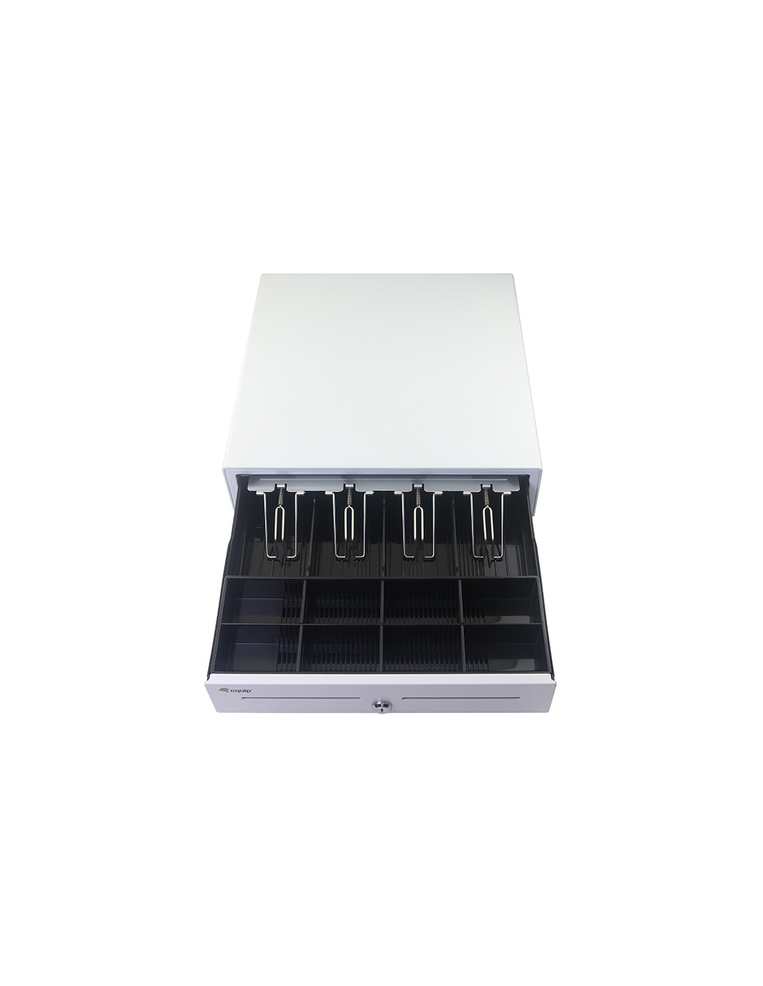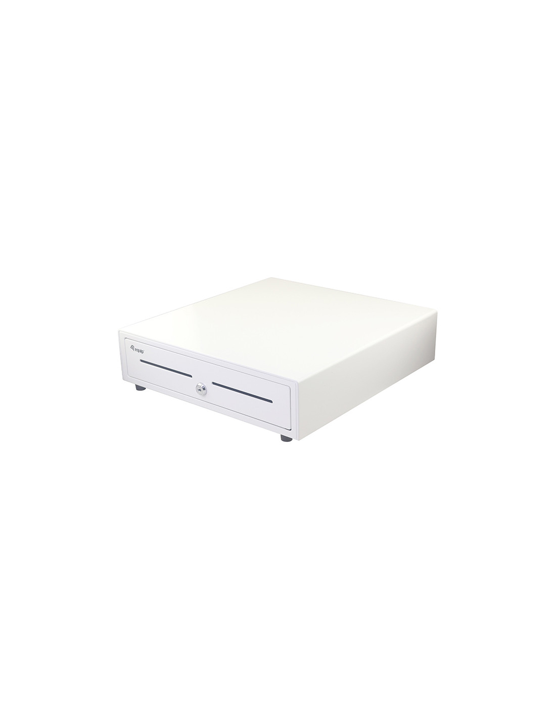 Equip 351011. Tipo di prodotto: Cassetto di cassa manuale e automatico, Materiale della scocca: Metallo, Colore del prodotto: Bianco. Larghezza: 420 mm, Profondità: 405 mm, Altezza: 110 mm. Numero di tasti inclusi: 2 pz. Quantità per cartone principale: 1 pz, Peso del cartone principale: 6,5 kg, Lunghezza del cartone principale: 450 mm