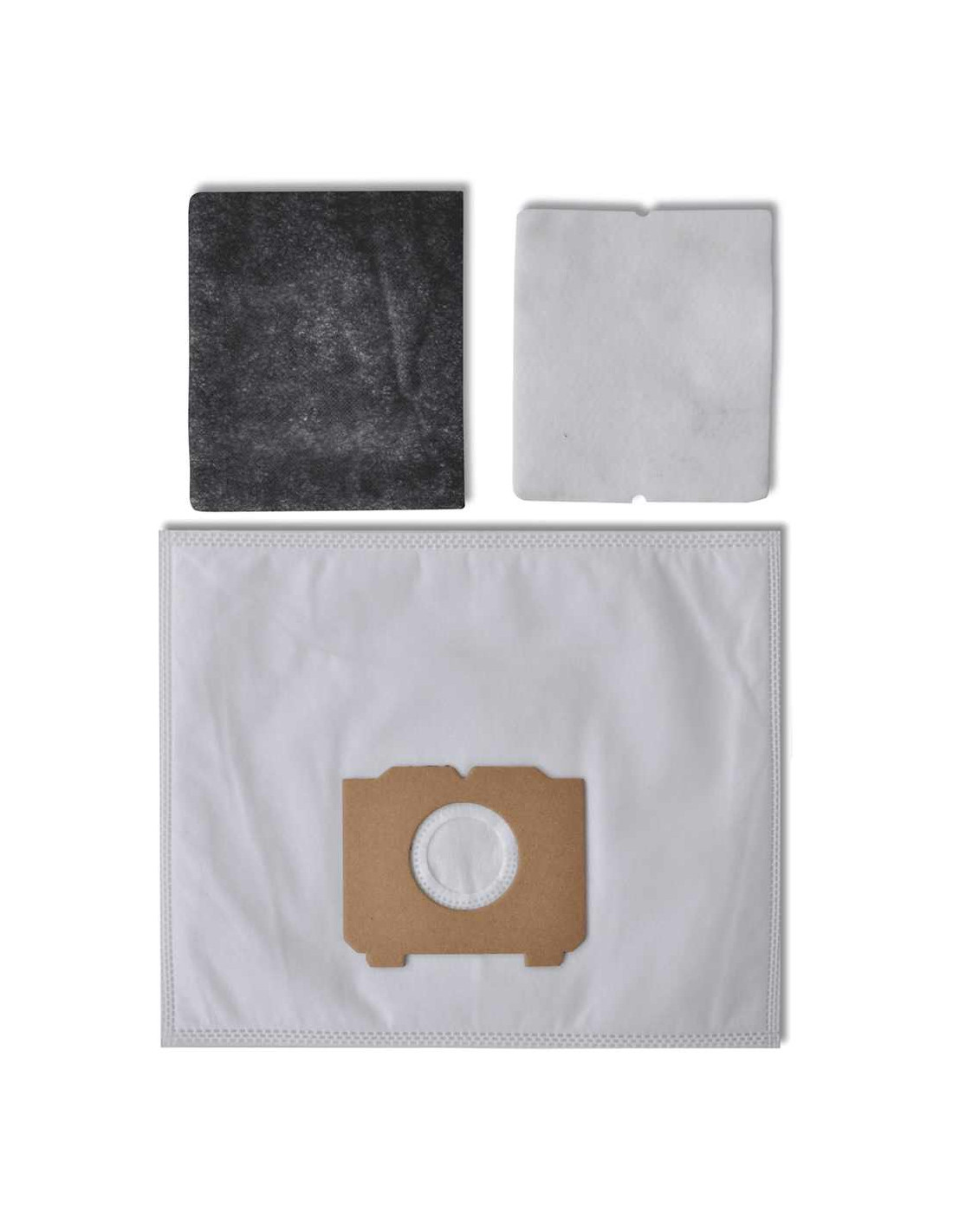 Il sacchetto, con una struttura a 3 strati, è realizzato in tessuto non tessuto di alta qualità, dalla consistenza compatta e anti-rottura. Il connettore in cartone sul sacchetto impedisce che si stacchi dopo urti e scossoni. I 2 filtri in dotazione possono essere utilizzati per filtrare perfettamente la polvere fine.