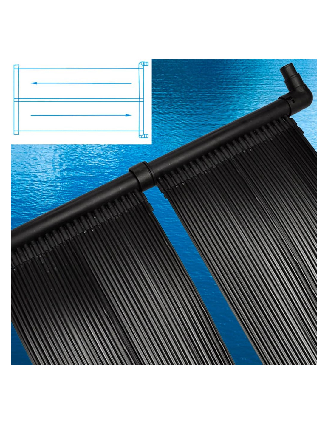 Dopo l'installazione di questo riscaldatore, l'acqua della piscina circola attraverso i canali solari e ritorna nella piscina piacevolmente calda. È compatibile con la maggior parte delle pompe per piscine. Può essere montato su un supporto o semplicemente poggiato a terra a bordo piscina.
