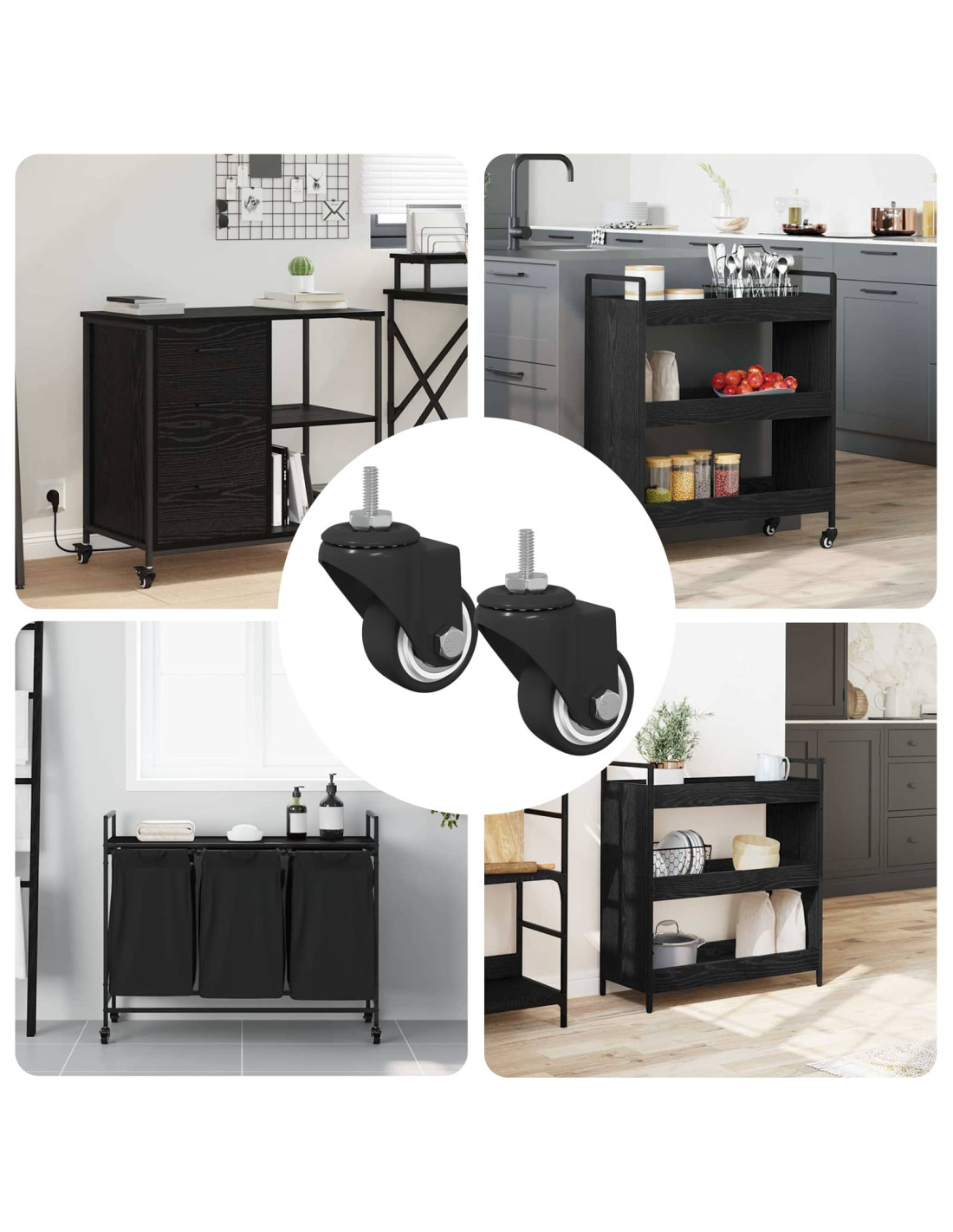 - Utilizzi versatili Questo girello è pensato per un'ampia gamma di applicazioni. È perfetto per supportare carrelli in movimento o sistemi modulari, egualmente utile per chi lavora da casa o per professionisti che devono adattare le loro attrezzature.