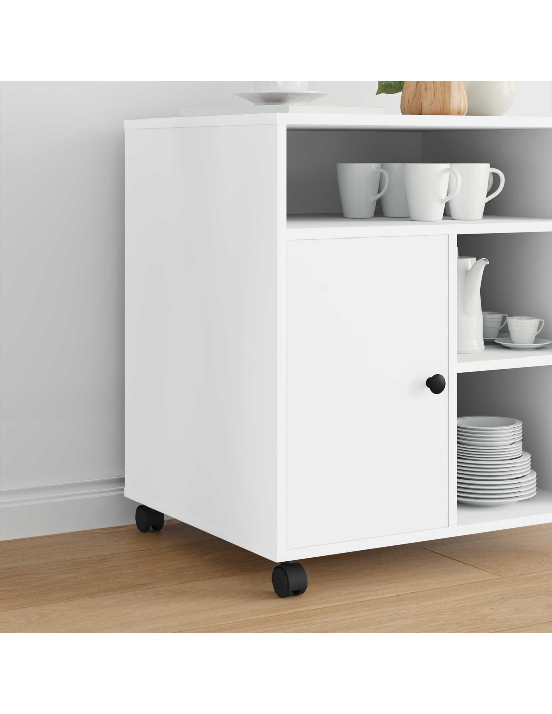 - Componenti facili: Include ruote che scorrono bene su ogni tipo di pavimento, minimizzando i danni e massimizzando la comodità. Si monta rapidamente nei mobili già esistenti.