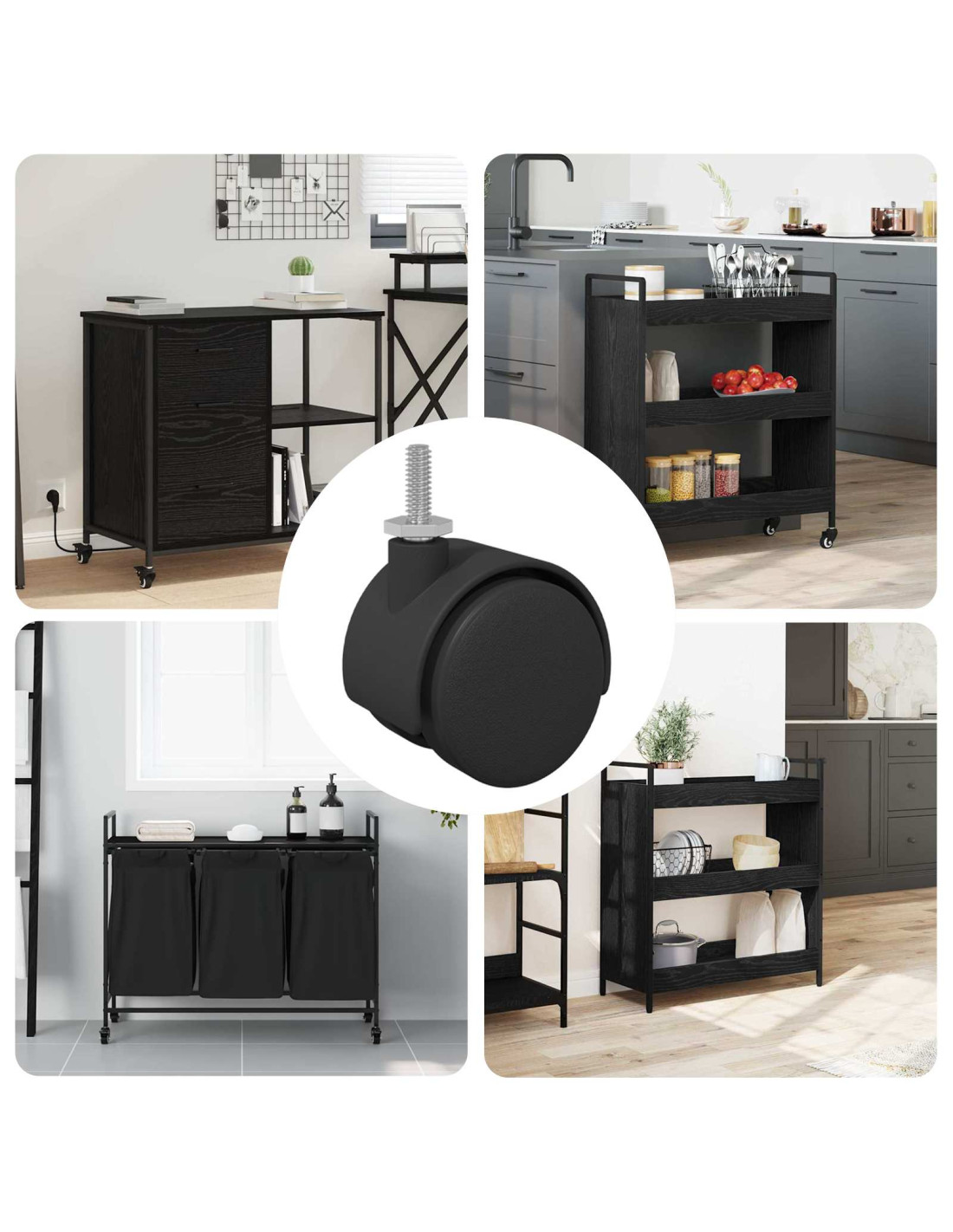 - Applicazioni versatili: Perfette per sedie da ufficio, unità di stoccaggio e piattaforme mobili, queste ruote soddisfano diverse esigenze di mobilità. La loro adattabilità alle superfici assicura comodità, rendendole una scelta eccellente per chi cerca soluzioni flessibili.
