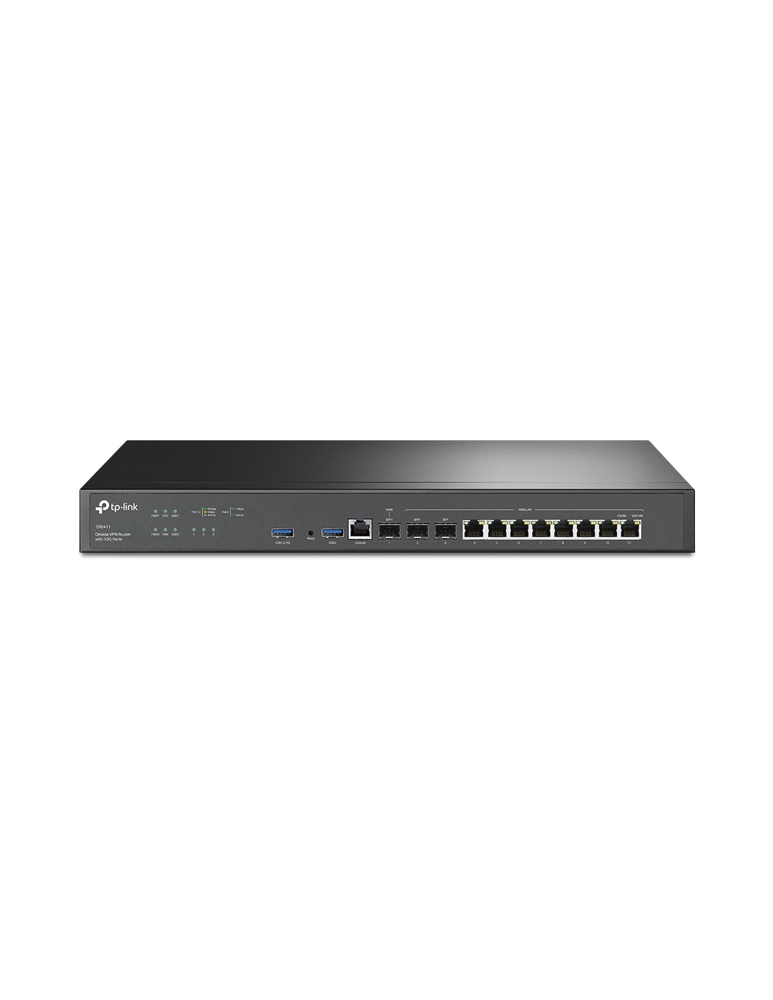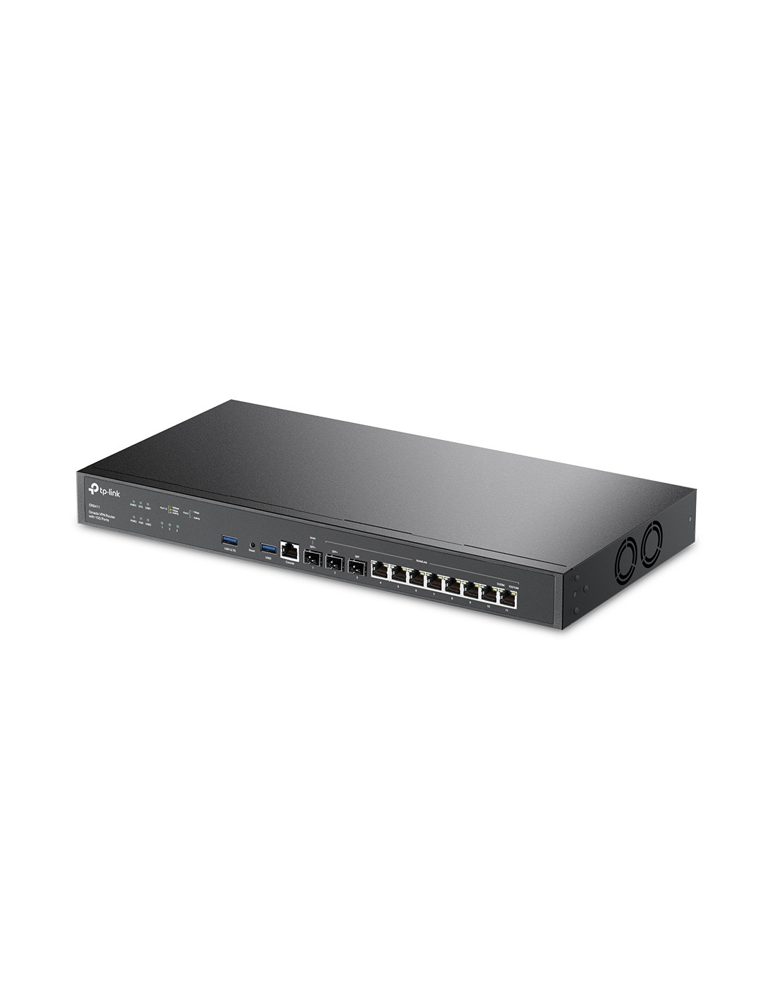 TP-Link Omada ER8411. Standard di rete: IEEE 802.1Q, Tipo di interfaccia Ethernet: Gigabit Ethernet, Tecnologia di cablaggio: 10/100/1000Base-T(X). Funzionalità NAT: One-to-One NAT; Multi-Net NAT; Virtual Server; Port Triggering; NAT-DMZ; FTP/H.323/SIP/IPSec/PPTP.... Memoria flash: 256 MB, RAM installata: 4096 MB, Tipo di RAM: DDR4. Colore del prodotto: Nero. Tensione di ingresso AC: 100 - 240 V, Frequenza di ingresso AC: 50 - 60 Hz