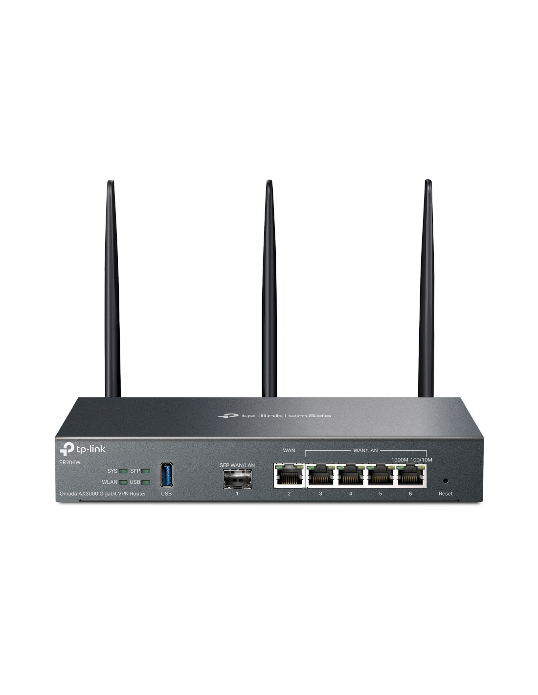 TP-Link Omada ER706W. Tipo di connessione WAN: SFP. Banda Wi-Fi: Dual-band (2.4 GHz/5 GHz), Intervallo di trasferimento dei dati WLAN (max): 3000 Mbit/s, Frequenza di trasferimento dati WLAN (prima banda): 574 Mbit/s. Tipo di interfaccia LAN Ethernet: Gigabit Ethernet, Velocità trasferimento Ethernet LAN: 10,100,1000 Mbit/s, Tecnologia di cablaggio: 10/100/1000Base-T(X). Algoritmi di sicurezza supportati: WPA, WPA2, WPA3-Enterprise. Protocollo di routing: OSPF, RIP