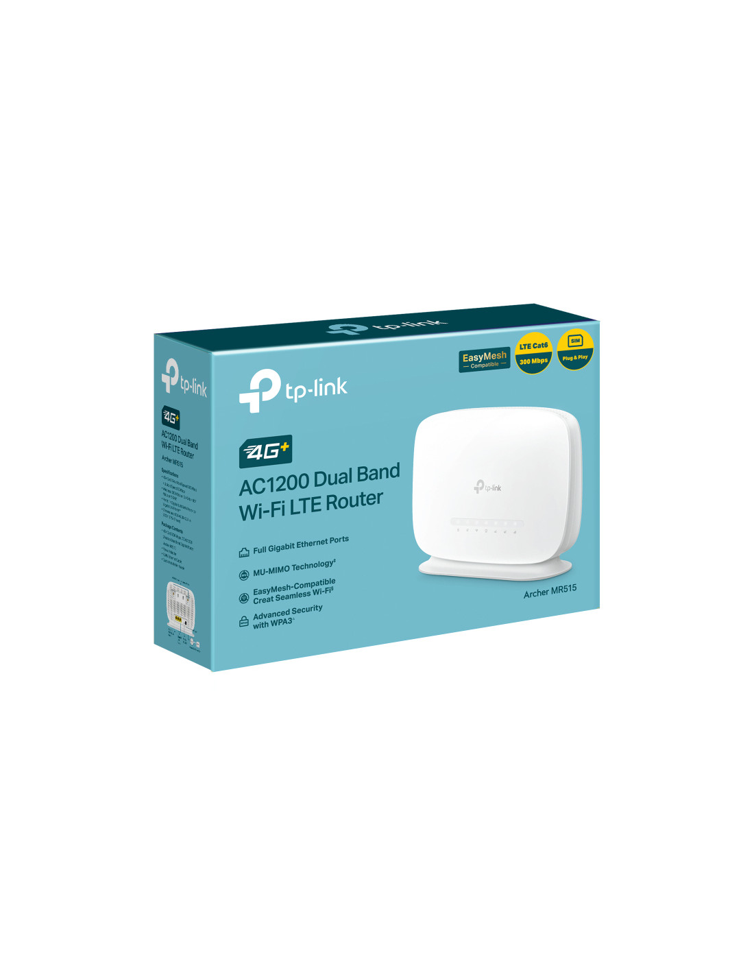 TP-Link Archer AC1200. Tipo di connessione WAN: RJ-45. Banda Wi-Fi: Dual-band (2.4 GHz/5 GHz), Wi-Fi standard: Wi-Fi 5 (802.11ac), Intervallo di trasferimento dei dati WLAN (max): 867 Mbit/s. Tipo di interfaccia LAN Ethernet: Gigabit Ethernet, Velocità trasferimento Ethernet LAN: 10,100,1000 Mbit/s, Server VPN: PPTP VPN, OpenVPN. Generazione di reti mobili: 4G, Standard 3G: DC-HSPA+, HSPA, UMTS, Standard 4G: LTE-TDD & LTE-FDD. Algoritmi di sicurezza supportati: 64-bit WEP, 128-bit WEP, WPA, WPA-Enterprise, WPA2-Enterprise, WPA3, WPA3-Enterprise
