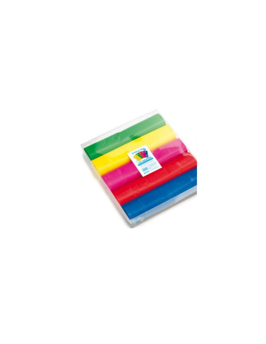 CF125 BUSTE CON MANICO 46X25 CM POLIPROPILENE 60 MY IN SCATOLA TRASPARENTE DA 5 COLORI ASSORTITI