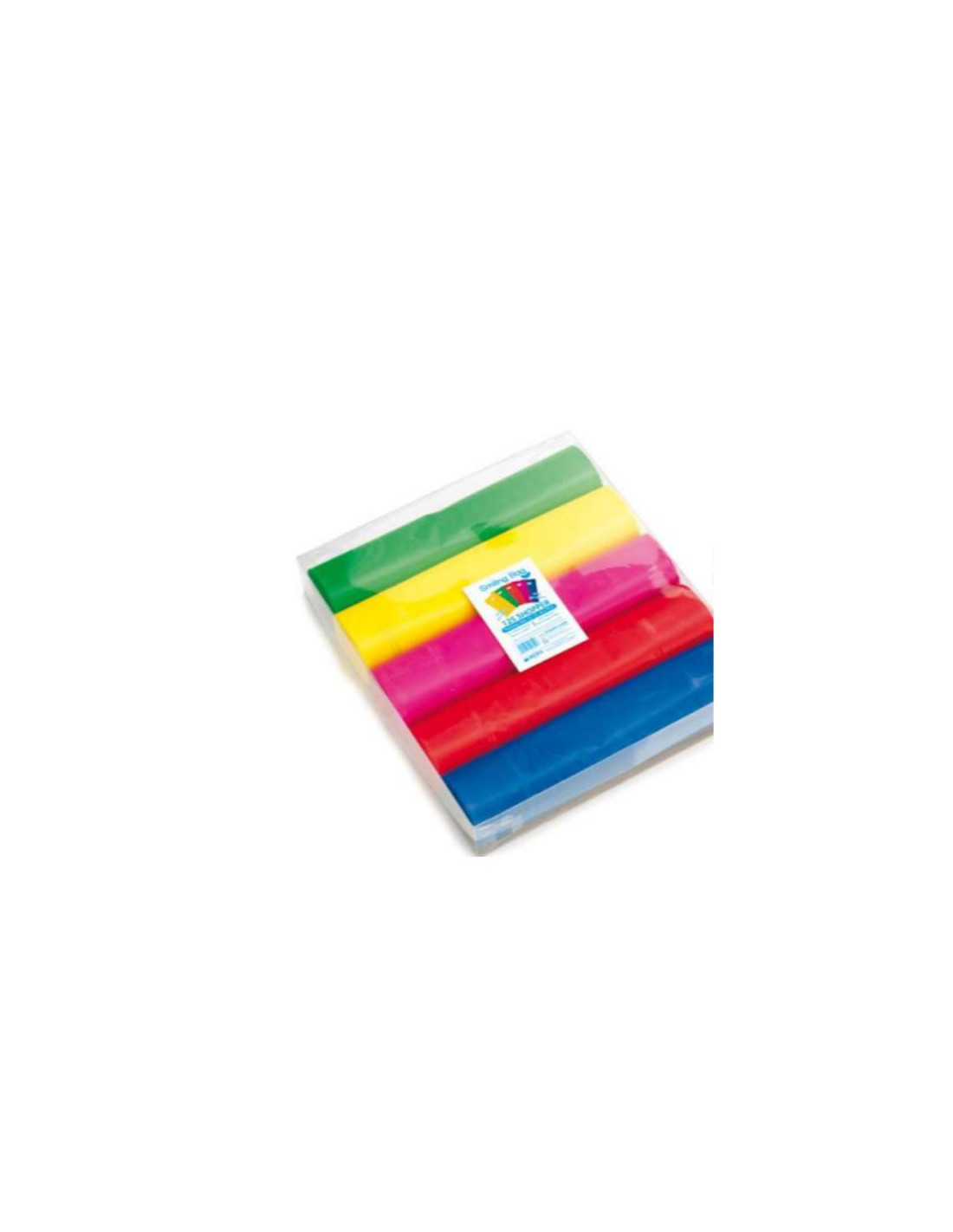 CF125 BUSTE CON MANICO 42X20 CM POLIPROPILENE 60 MY IN SCATOLA TRASPARENTE DA 5 COLORI ASSORTITI