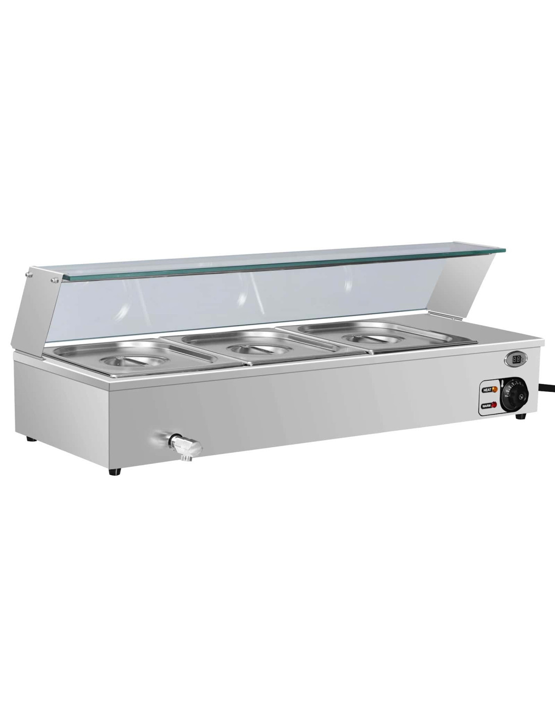 - Materiali: In acciaio inox, questi vassoi riscaldati offrono un look moderno e chic, aggiungendo eleganza a qualsiasi tavola. L'acciaio è durevole, perfetto per usi intensi. Il suo esterno lucido è facile da pulire, mantenendo un aspetto impeccabile per anni.