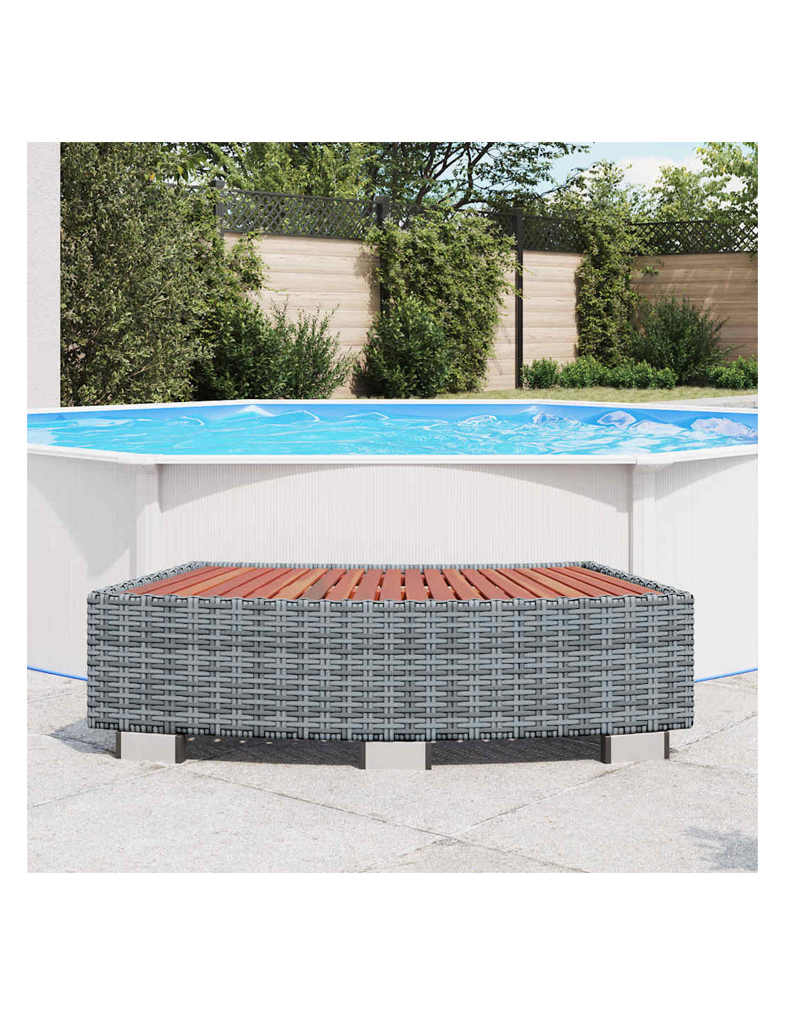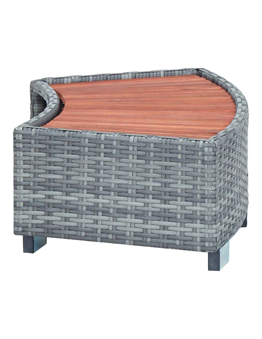 Realizzato in rattan PE e legno massello di eucalipto tropicale con finitura naturale a olio è resistente alle intemperie, ai raggi UV, durevole e comodo da utilizzare. Lo scalino per vasca idromassaggio ha dei piedini in alluminio molto stabili sulla parte frontale e sul retro. Grazie alla struttura in acciaio verniciato a polvere, questo gradino non è solamente robusto e resistente, ma anche bello. Aggiungerà un tocco di eleganza alla vostra spa.