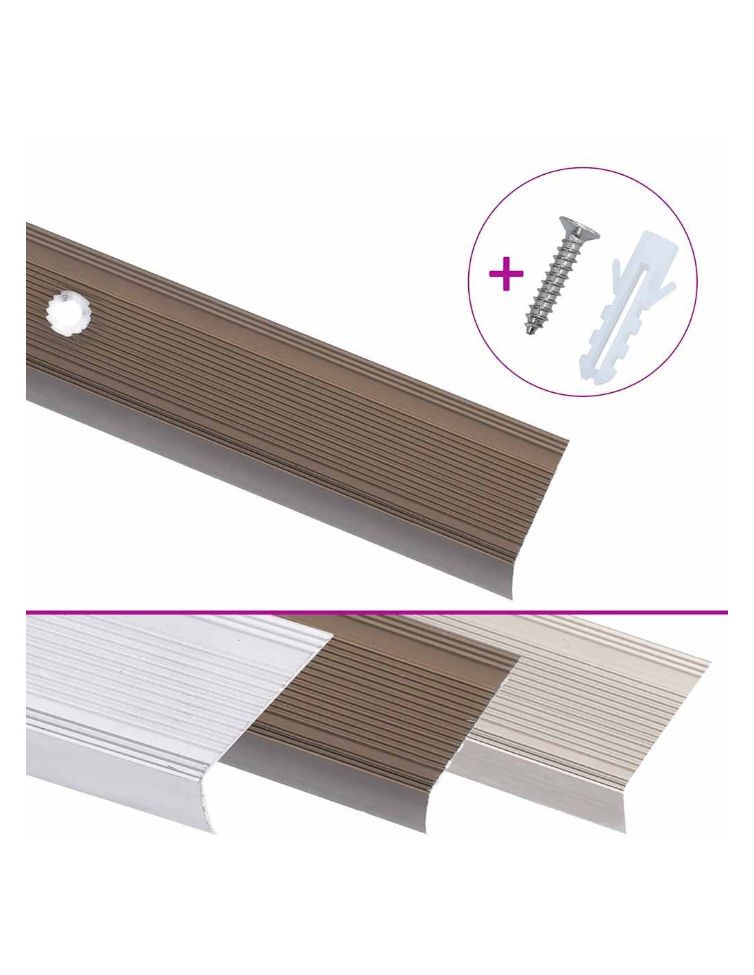 I profili delle scale sono ideali per i luoghi con scale, in particolare le scale a casa. Realizzato in alluminio, ogni paraspigolo a forma di L ha un inserto in plastica antiscivolo ed è molto leggero. Grazie ai fori preesistenti, l'installazione del paraspigoli diventa un gioco da ragazzi e può essere eseguita rapidamente con i tasselli e le viti in dotazione.