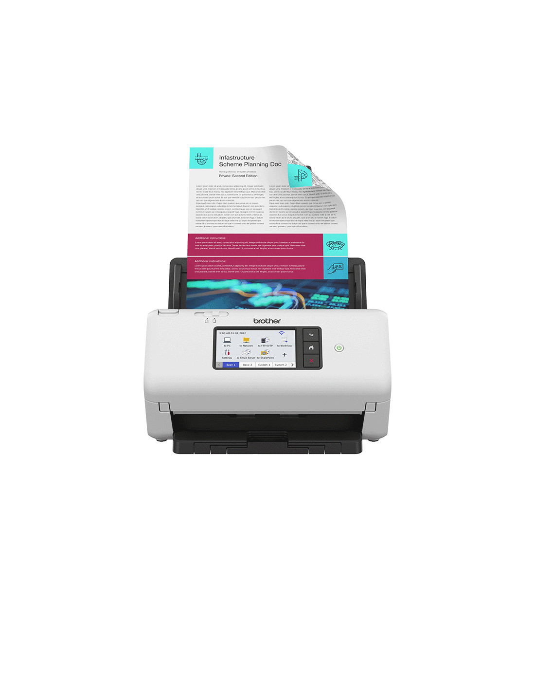 Progettato per consentire alle aziende di semplificare flussi di lavoro complessi o processi operativi. Acquisisci in modo sicuro i tuoi documenti per condividerli e collaborare con i colleghi a casa o in ufficio. Ampio e intuitivo touchscreen 10,9cm con 56 tasti di scelta rapida configurabili Esperienza multiutente personalizzata Condivisione sicura del gruppo di lavoro Elaborazione avanzata delle immagini e scansione batch Caratteristiche scansione Auto Start, sensore ultrasonico multifeed, interruttore di separazione, anteprima scansione, allarme pulizia CIS Include il software Brother ScanEssentials Compatibilità dei driver con TWAIN (WIN e macOS), WIA, ISIS, Linux SANE