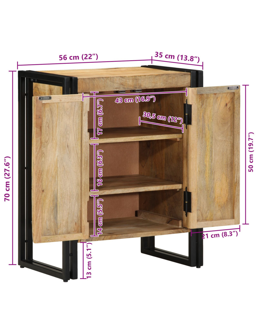 - Dimensioni complessive: 56 x 35 x 70 cm (L x P x A)