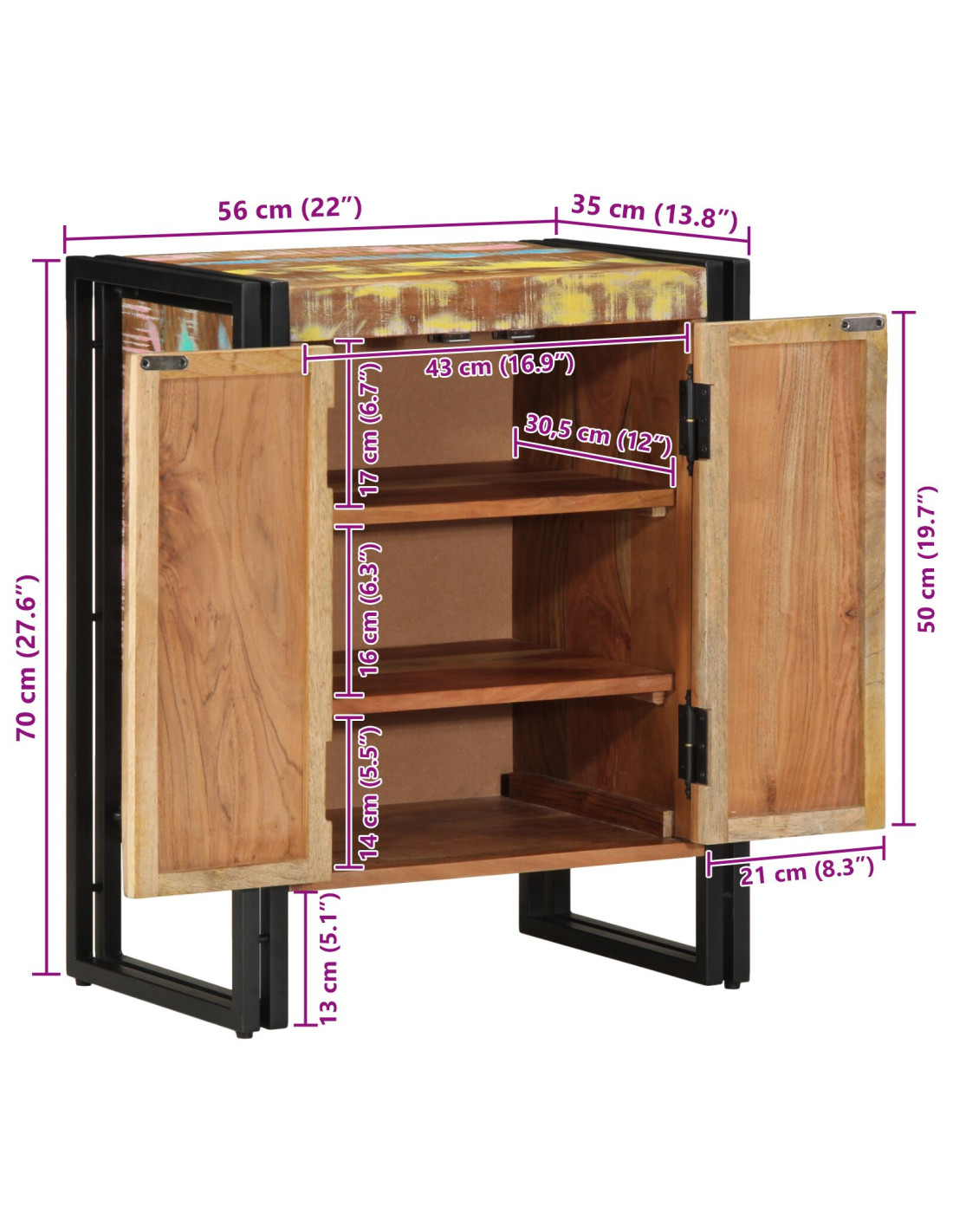 - Dimensioni complessive: 56 x 35 x 70 cm (L x P x A)