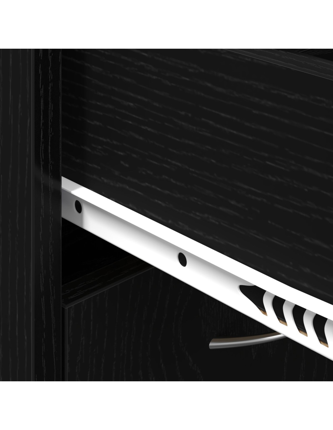 - Maniglie a barra moderne: Le maniglie argentate non sono solo funzionali ma anche stilose, offrendo una presa comoda e aggiungendo un tocco metallico discreto. Questo particolare design si integra nel look moderno dell'armadio, migliorando sia la sua forma sia la sua funzione.