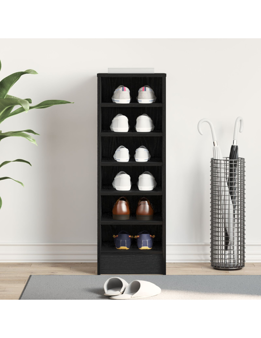 - Ripiani versatili Con ripiani pratici, l'armadio permette uno stoccaggio semplice e funzionale. Queste superfici possono contenere vari tipi di scarpe, da sneakers a scarpe eleganti, aiutando a mantenere tutto in ordine. Accedi facilmente alla tua collezione di scarpe.