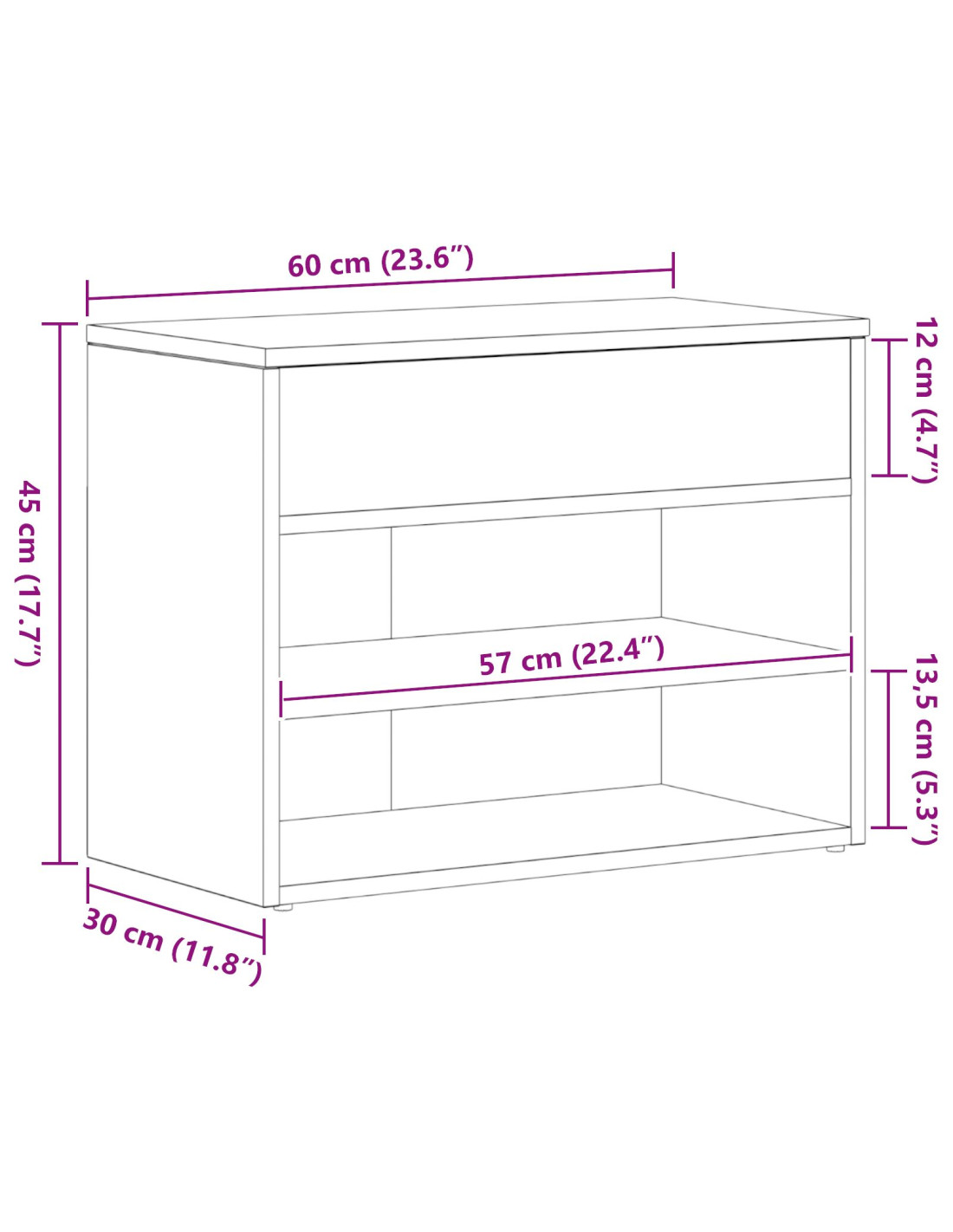 - Dimensioni complessive: 60 x 30 x 45 cm (L x P x A)