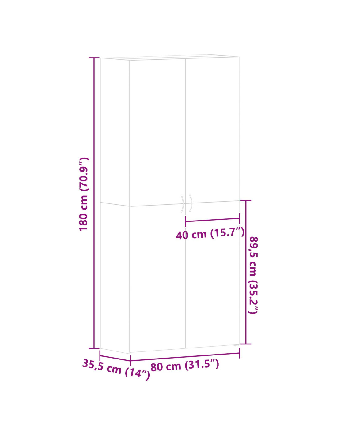 - Dimensioni complessive: 80 x 35,5 x 180 cm (L x P x A)
