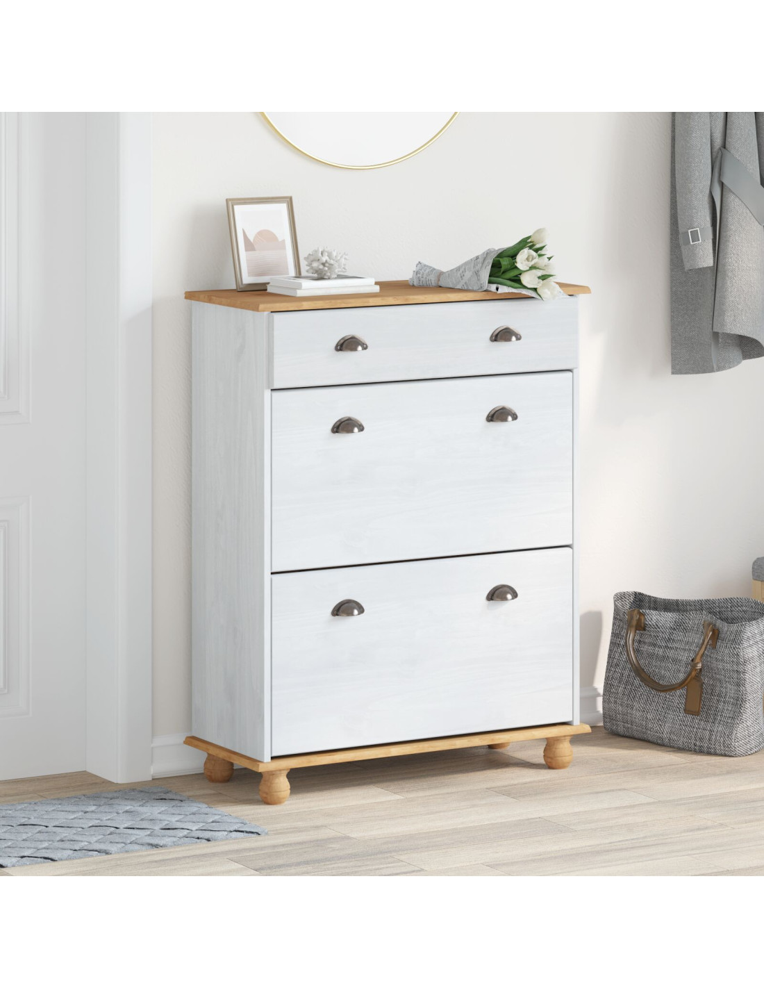 - Componenti utili: Con cassetti e maniglie a D sagomate, questo mobile è pratico ed elegante. I cassetti offrono spazio per tante scarpe, e le maniglie ergonomiche facilitano l’uso rendendolo accessibile e bello.
