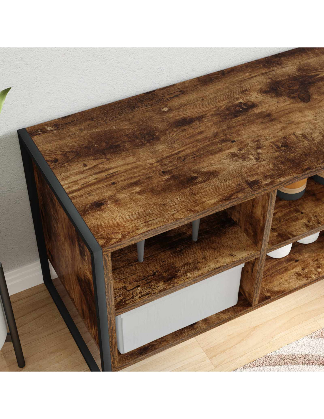 Questo mobile per scarpe dal design industriale si adatta a qualsiasi soggiorno grazie alla sua forma rettangolare e raffinata in legno ingegnerizzato. Creato per uso interno, ti offre un sacco di spazio per organizzare e riporre le scarpe senza perdere il look. Con il suo stile unico, è un'aggiunta che si fa notare in qualsiasi interno, rendendolo perfetto per vari stili di arredo.
