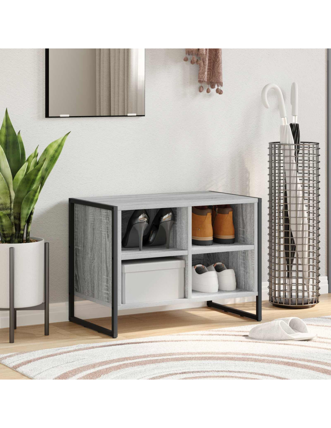 Questo mobile per scarpe dal design industriale si adatta a qualsiasi soggiorno grazie alla sua forma rettangolare e raffinata in legno ingegnerizzato. Creato per uso interno, ti offre un sacco di spazio per organizzare e riporre le scarpe senza perdere il look. Con il suo stile unico, è un'aggiunta che si fa notare in qualsiasi interno, rendendolo perfetto per vari stili di arredo.