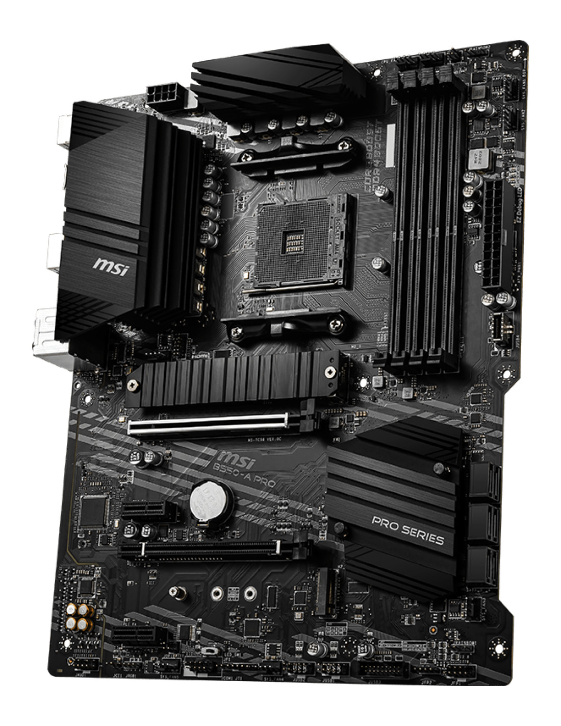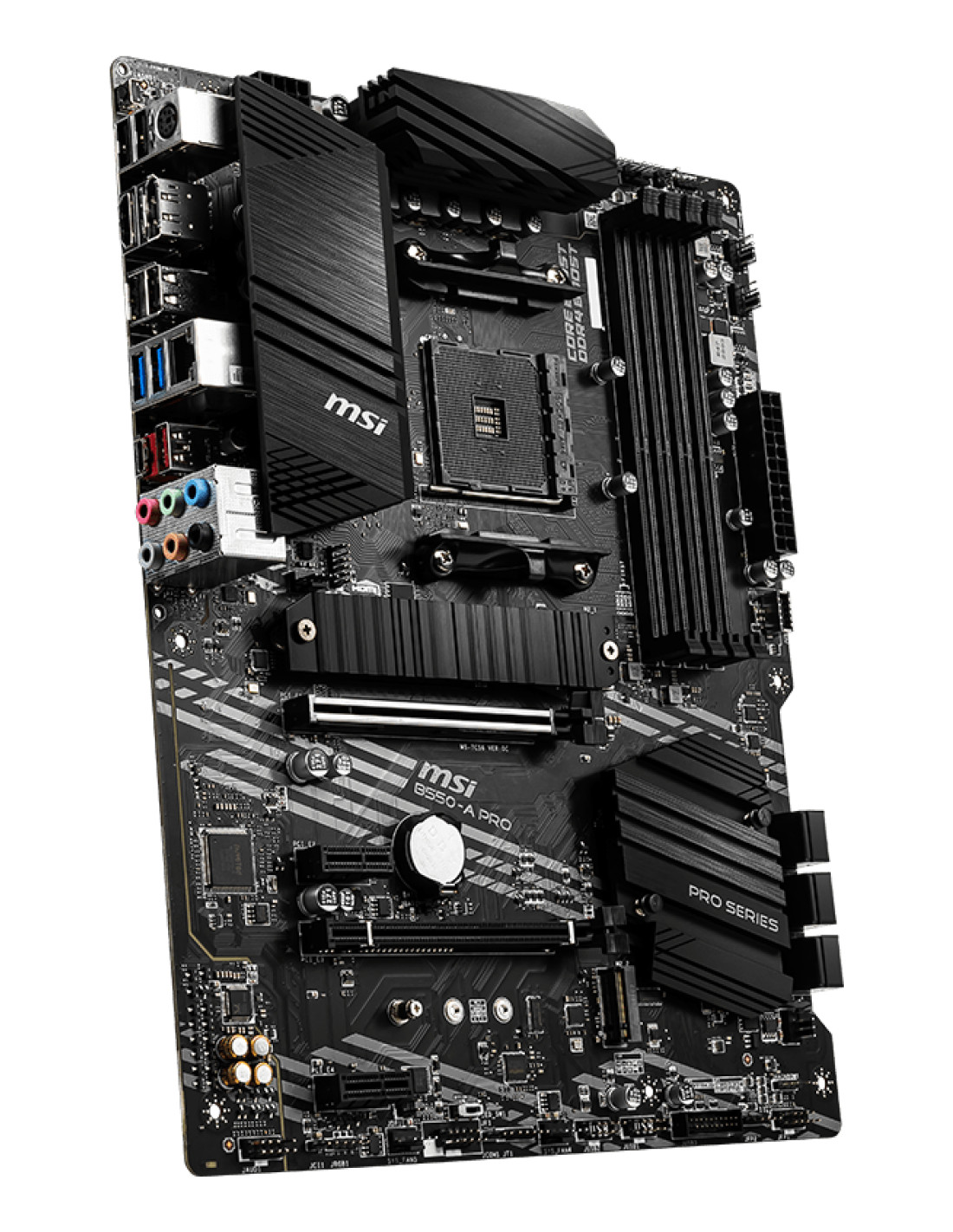 MSI B550-A PRO. Produttore processore: AMD, Presa per processore: Socket AM4, Processori compatibili: AMD Ryzen 3000 Series. Tipi di memoria supportati: DDR4-SDRAM, RAM massima supportata: 128 GB, tipo di slot di memoria: DIMM. Interfacce dell'unità di archiviazione supportate: SATA III, Tipi di unità di archiviazione supportate: HDD & SSD, Livelli RAID: 0, 1, 10. Tecnologia di processo parallela: 2-Way CrossFireX, Memoria massima adattatore grafico: 16000 MB, Risoluzione massima: 4096 x 2160 Pixel. Tipo di interfaccia Ethernet: Gigabit Ethernet, Controller LAN: Realtek 8111H