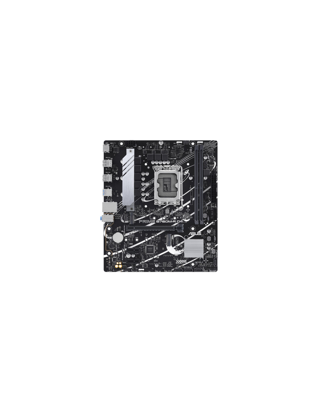 ASUS PRIME B760M-R D4. Produttore processore: Intel, Presa per processore: LGA 1700, Processori compatibili: Intel Core i9 14th Gen, Intel Core i3 12th Gen, Intel Core i3 13th Gen, Intel Core i5 12th Gen,.... Tipi di memoria supportati: DDR4-SDRAM, RAM massima supportata: 64 GB, tipo di slot di memoria: DIMM. Interfacce dell'unità di archiviazione supportate: M.2, SATA III, Tipi di unità di archiviazione supportate: HDD & SSD, Livelli RAID: 0, 1, 5, 10. Tipo di interfaccia Ethernet: 2.5 Gigabit Ethernet. Componente per: PC, Fattore di forma scheda madre: micro ATX, Famiglia di chipset per scheda madre: Intel