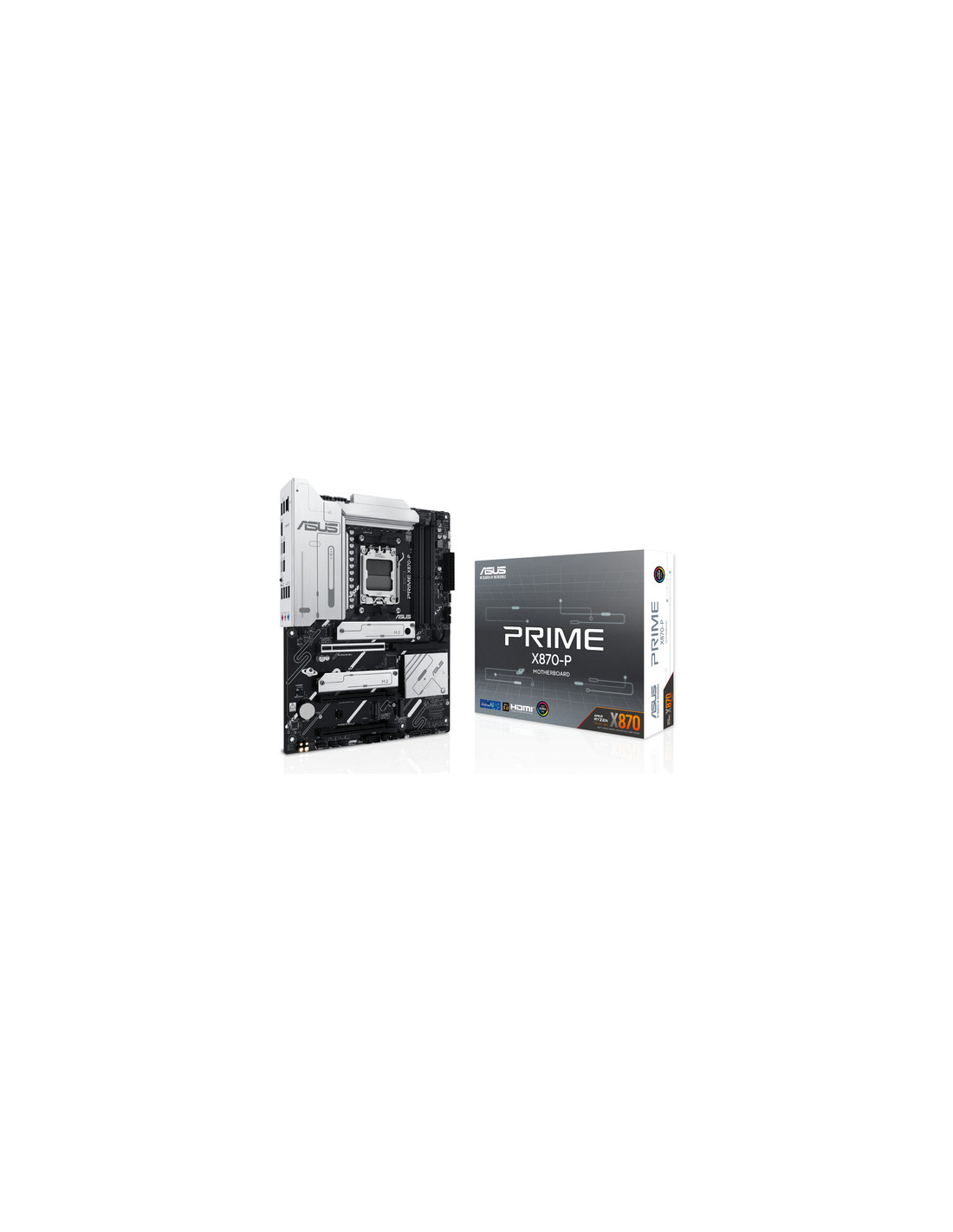 ASUS PRIME X870-P. Produttore processore: AMD, Presa per processore: Socket AM5, Processori compatibili: AMD Ryzen 7000 Series, AMD Ryzen 8000 Series, AMD Ryzen 9000 Series. Tipi di memoria supportati: DDR5-SDRAM, RAM massima supportata: 192 GB, tipo di slot di memoria: DIMM. Interfacce dell'unità di archiviazione supportate: M.2, SATA III, Tipi di unità di archiviazione supportate: HDD & SSD, Livelli RAID: 0, 1, 5, 10. versione DisplayPort: 1.4a. Tipo di interfaccia Ethernet: 2.5 Gigabit Ethernet