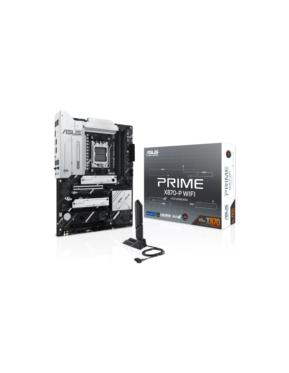 ASUS Prime X870-P WIFI. Produttore processore: AMD, Presa per processore: Socket AM5, Processori compatibili: AMD Ryzen 7000 Series, AMD Ryzen 8000 Series, AMD Ryzen 9000 Series. Tipi di memoria supportati: DDR5-SDRAM, RAM massima supportata: 192 GB, tipo di slot di memoria: DIMM. Interfacce dell'unità di archiviazione supportate: M.2, SATA III, Tipi di unità di archiviazione supportate: HDD & SSD, Livelli RAID: 0, 1, 5, 10. versione DisplayPort: 1.4a. Tipo di interfaccia Ethernet: 2.5 Gigabit Ethernet, Wi-Fi standard: Wi-Fi 7 (802.11be), Standard Wi-Fi: 802.11a, 802.11b, 802.11g, Wi-Fi 4 (802.11n), Wi-Fi 5 (802.11ac), Wi-Fi 6 (802.11ax), Wi-Fi 6E...