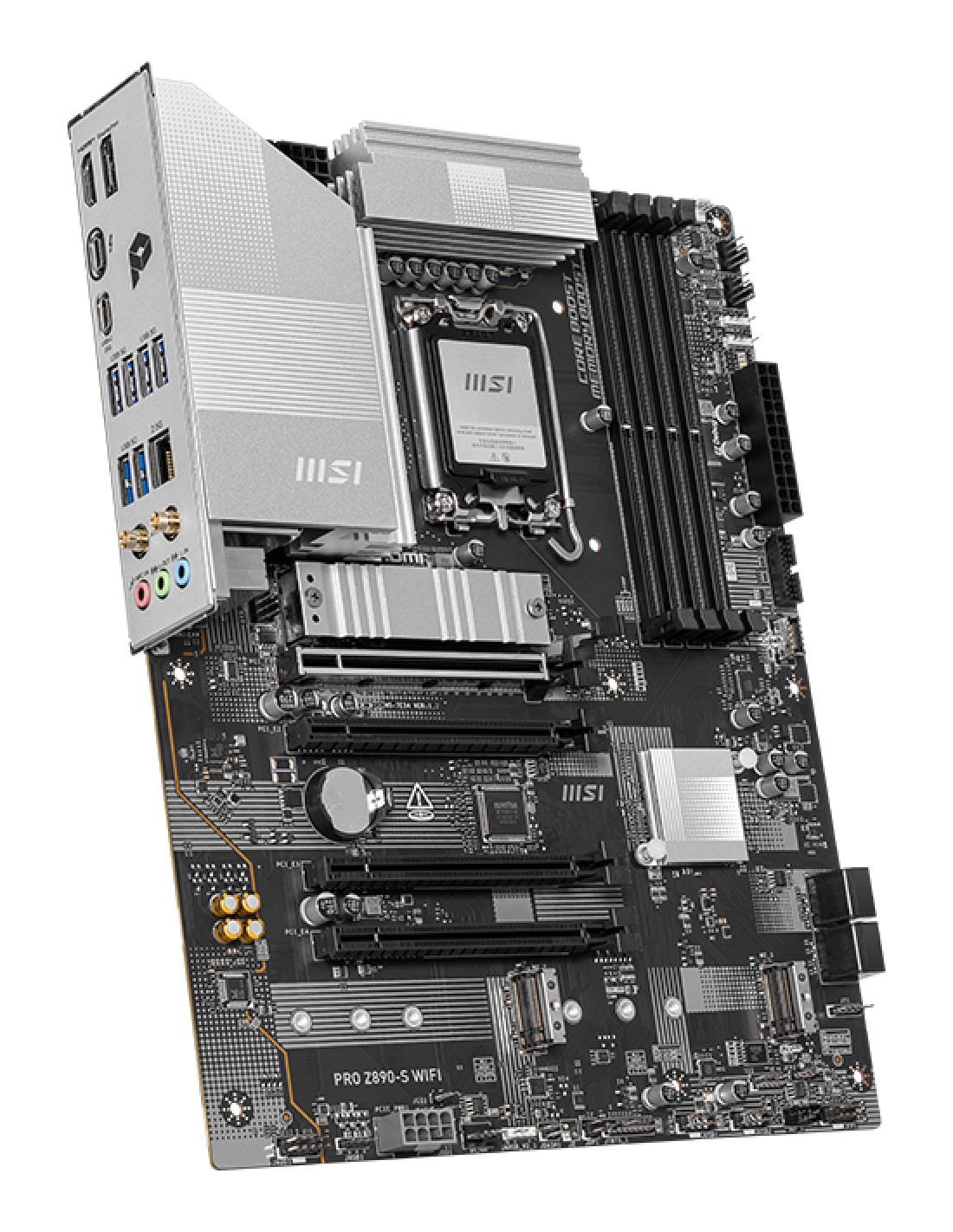 MSI PRO Z890-S WIFI. Produttore processore: Intel, Presa per processore: LGA 1851 (Socket V1), Processori compatibili: Intel Core Ultra (Series 2). Tipi di memoria supportati: DDR5-SDRAM, RAM massima supportata: 256 GB, tipo di slot di memoria: DIMM. Interfacce dell'unità di archiviazione supportate: M.2, SATA III, Tipi di unità di archiviazione supportate: HDD & SSD, Livelli RAID: 0, 1, 5, 10. Tipo di interfaccia Ethernet: 2.5 Gigabit Ethernet, Wi-Fi standard: Wi-Fi 7 (802.11be), Standard Wi-Fi: 802.11a, 802.11b, 802.11g, Wi-Fi 4 (802.11n), Wi-Fi 5 (802.11ac), Wi-Fi 6 (802.11ax), Wi-Fi 6E.... Componente per: PC, Fattore di forma scheda madre: ATX, Famiglia di chipset per scheda madre: Intel