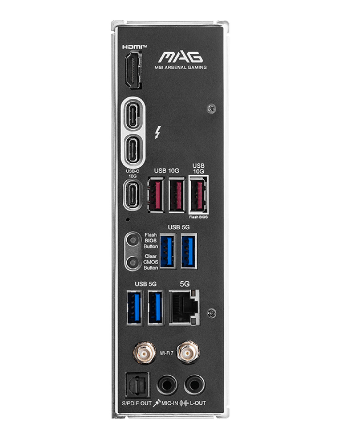 MSI MAG Z890 TOMAHAWK WIFI. Produttore processore: Intel, Presa per processore: LGA 1851 (Socket V1), Processori compatibili: Intel Core Ultra (Series 2). Tipi di memoria supportati: DDR5-SDRAM, RAM massima supportata: 256 GB, tipo di slot di memoria: DIMM. Interfacce dell'unità di archiviazione supportate: M.2, SATA III, Tipi di unità di archiviazione supportate: HDD & SSD, Livelli RAID: 0, 5, 10. Tipo di interfaccia Ethernet: 5 Gigabit Ethernet, Wi-Fi standard: Wi-Fi 7 (802.11be), Standard Wi-Fi: 802.11a, 802.11b, 802.11g, Wi-Fi 4 (802.11n), Wi-Fi 5 (802.11ac), Wi-Fi 6 (802.11ax), Wi-Fi 6E.... Componente per: PC, Fattore di forma scheda madre: ATX, Famiglia di chipset per scheda madre: Intel
