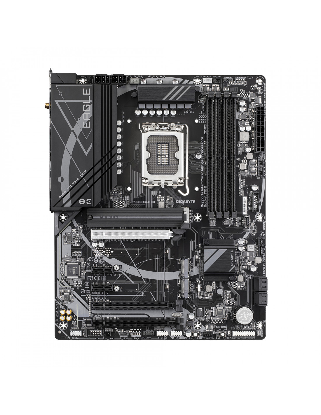 GIGABYTE Z790 EAGLE AX. Produttore processore: Intel, Presa per processore: LGA 1700, Processori compatibili: Intel® Celeron®, Intel® Core™ i3, Intel® Core™ i5, Intel® Core™ i7, Intel® Core™ i9,.... Tipi di memoria supportati: DDR5-SDRAM, RAM massima supportata: 192 GB, tipo di slot di memoria: DIMM. Interfacce dell'unità di archiviazione supportate: M.2, SATA III, Tipi di unità di archiviazione supportate: HDD & SSD, Livelli RAID: 0, 1, 5, 10. Risoluzione massima: 4096 x 2304 Pixel. Connettore USB: USB tipo A, USB tipo-C