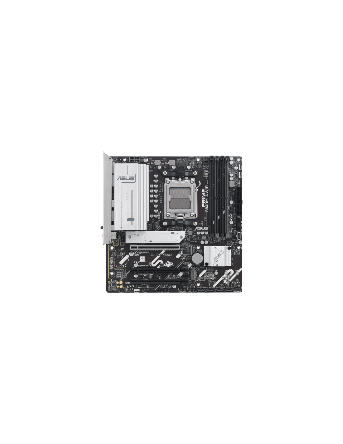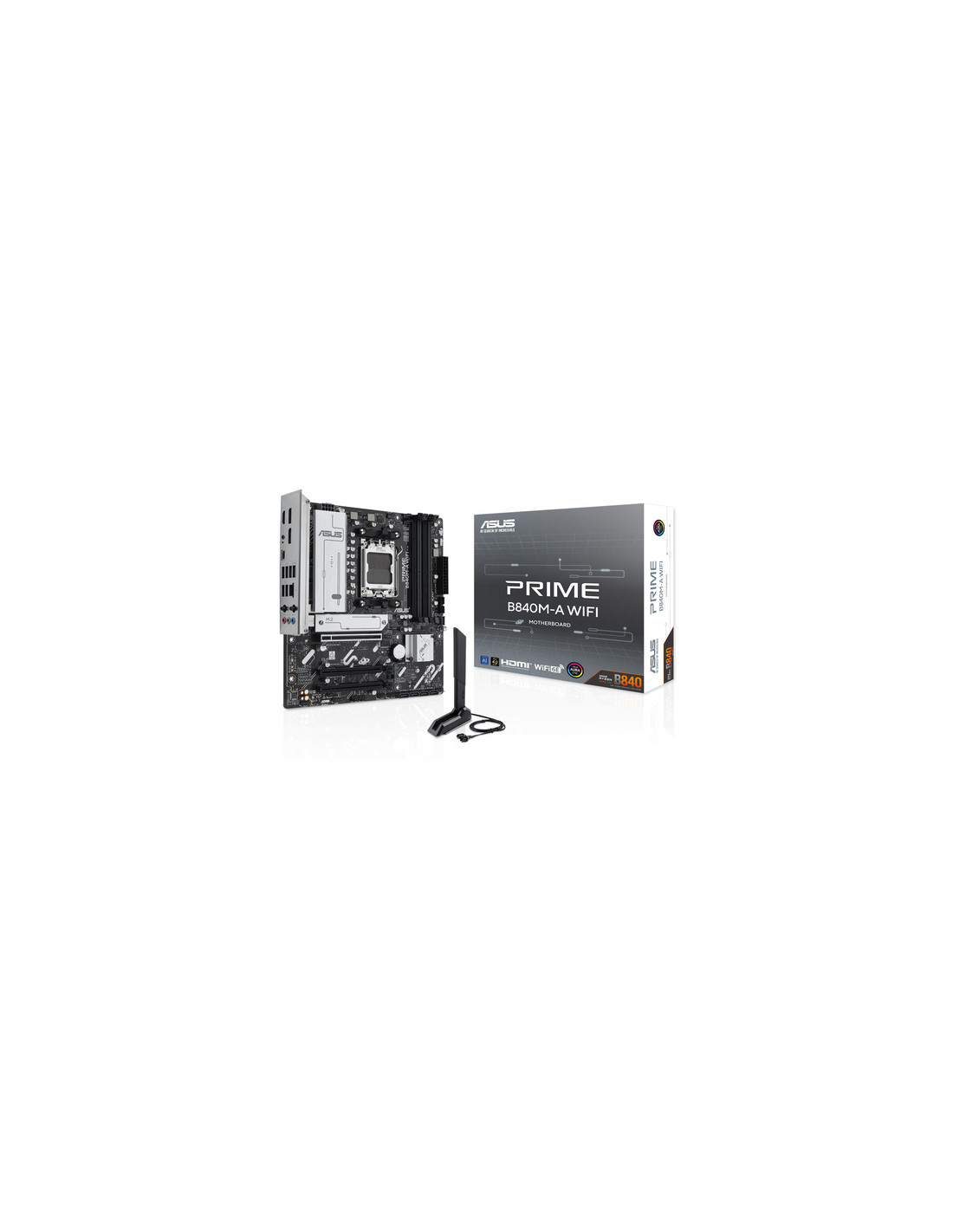 ASUS PRIME B840M-A WIFI. Produttore processore: AMD, Presa per processore: Socket AM5, Processori compatibili: AMD Ryzen 7000 Series, AMD Ryzen 8000 Series, AMD Ryzen 9000 Series. Tipi di memoria supportati: DDR5-SDRAM, RAM massima supportata: 192 GB, tipo di slot di memoria: DIMM. Interfacce dell'unità di archiviazione supportate: M.2, SATA III, Tipi di unità di archiviazione supportate: HDD & SSD, Livelli RAID: 0, 1, 5, 10. Tipo di interfaccia Ethernet: 2.5 Gigabit Ethernet, Wi-Fi standard: Wi-Fi 6E (802.11ax), Standard Wi-Fi: Wi-Fi 6E (802.11ax). Componente per: PC, Fattore di forma scheda madre: micro ATX, Famiglia di chipset per scheda madre: AMD